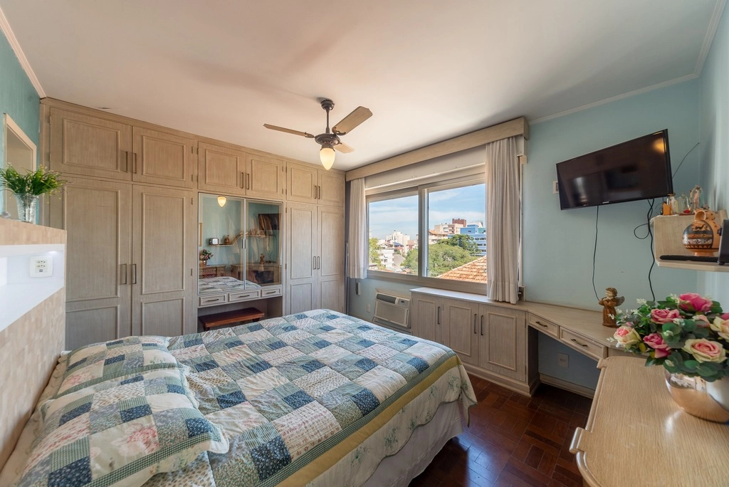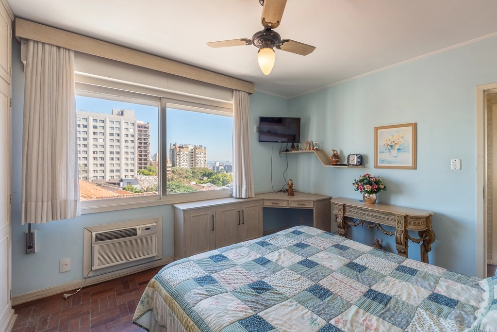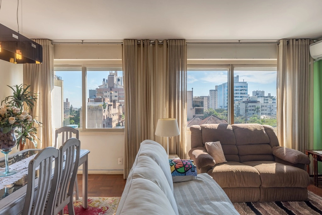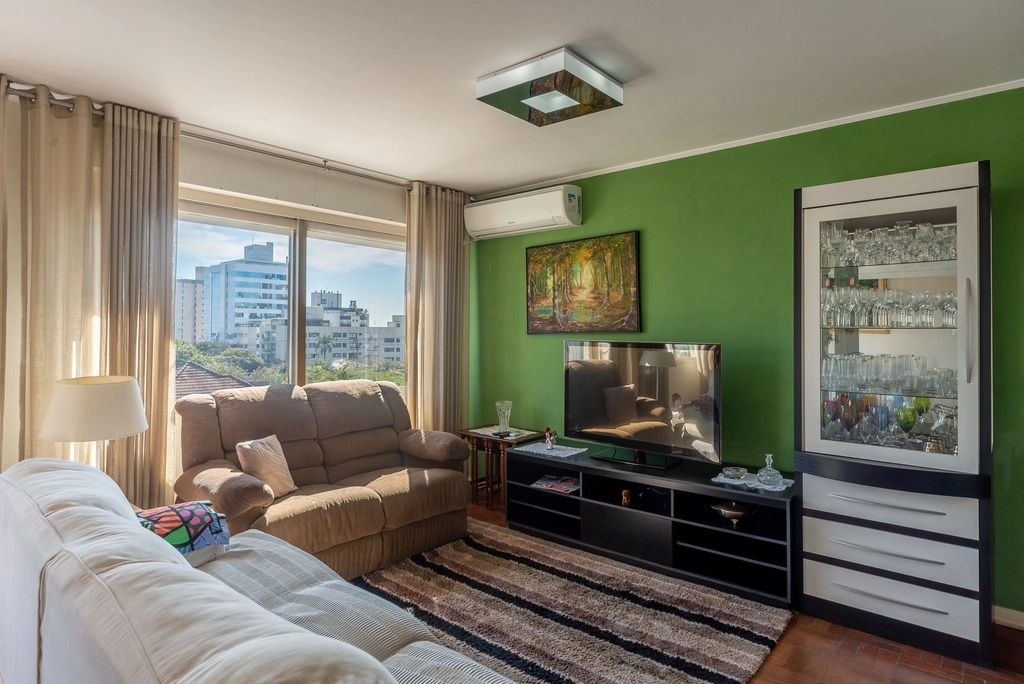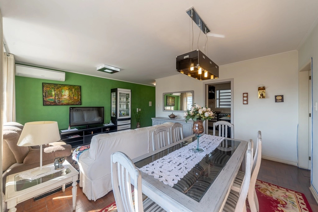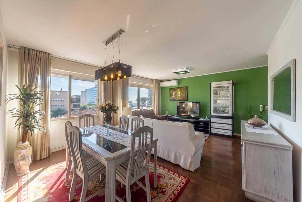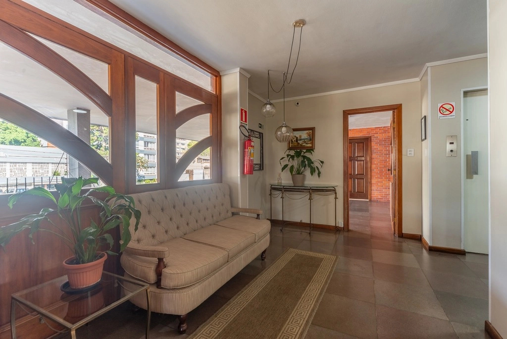 Ótimo apartamento mobiliado com 105,30mts privativos, 03 dormitórios, sendo 01 suíte, banho social, living grande para 2 ambientes, ampla copa/cozinha com saída de serviço, área de serviço com dependência de empregada e banheiro. Junker e Splits instalados tbem ficam no imóvel. Garagem escriturada coberta. Imóvel com todas peças bem amplas, muito arejado e excelente luminosidade devido sua posição solar Norte e Oeste. Recentemente reformado, esse apto com piso em parquet original muito bem conservado, apresenta diversas opções ao seu novo morador, como transformar a dependência e banheiro empregada num escritório e lavabo, bem como abrir a cozinha e deixar integrada a sala. Prédio renovado com elevador, salão de festas com churrasqueira, portão eletrônico, jardim, zelador e boxes para visitantes. Localizado em esquina de avenidas que possibilitam o rápido e fácil acesso para todos os lados e vários serviços no seu entorno. Preço e disponibilidade do imóvel sujeitos a alteração sem aviso prévio.