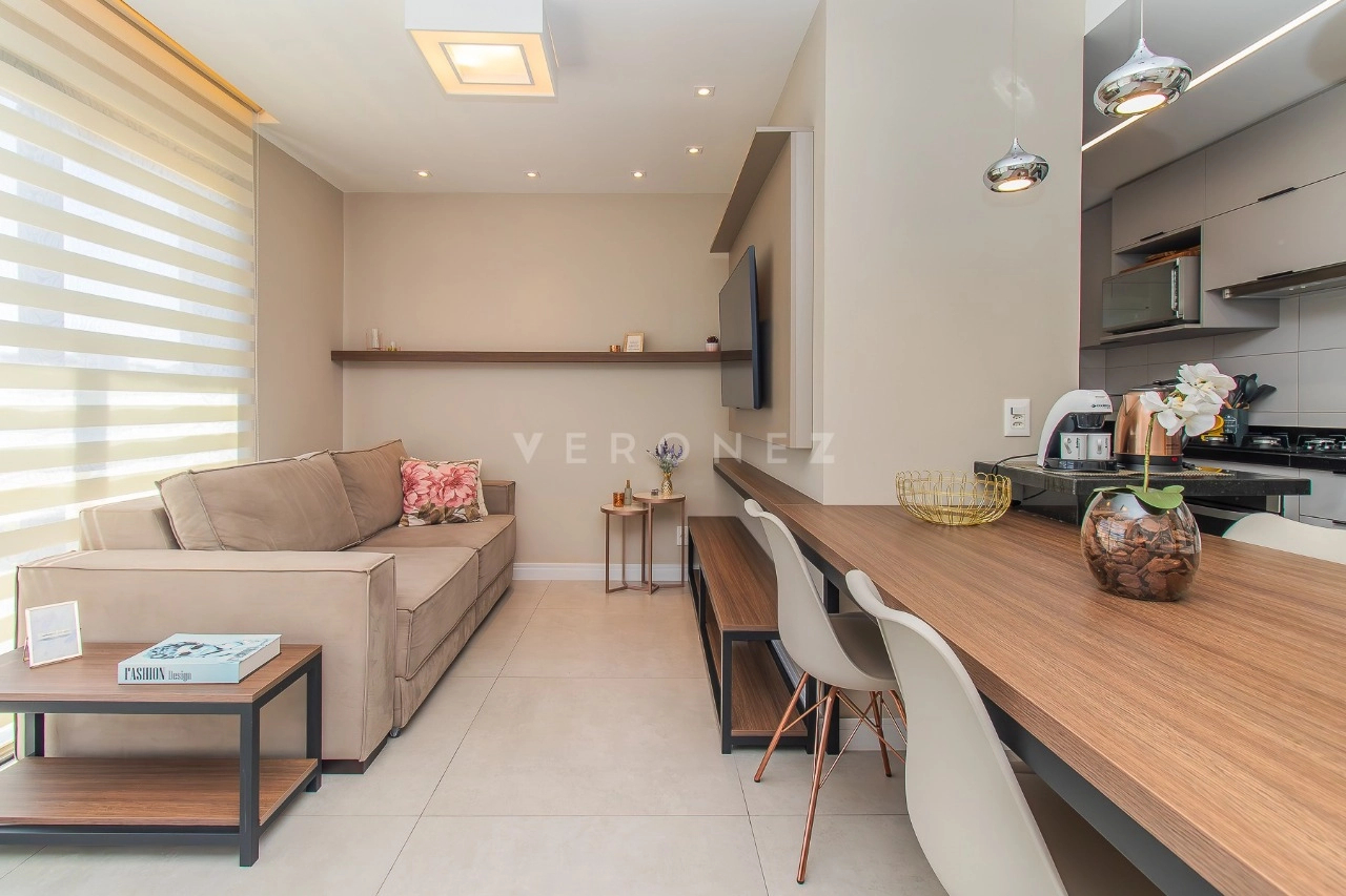 EXCLUSIVIDADE: Apartamento de 1 dormitório, com suíte americana, living 2 ambientes com sacada, cozinha americana com churrasqueira e área de serviço.