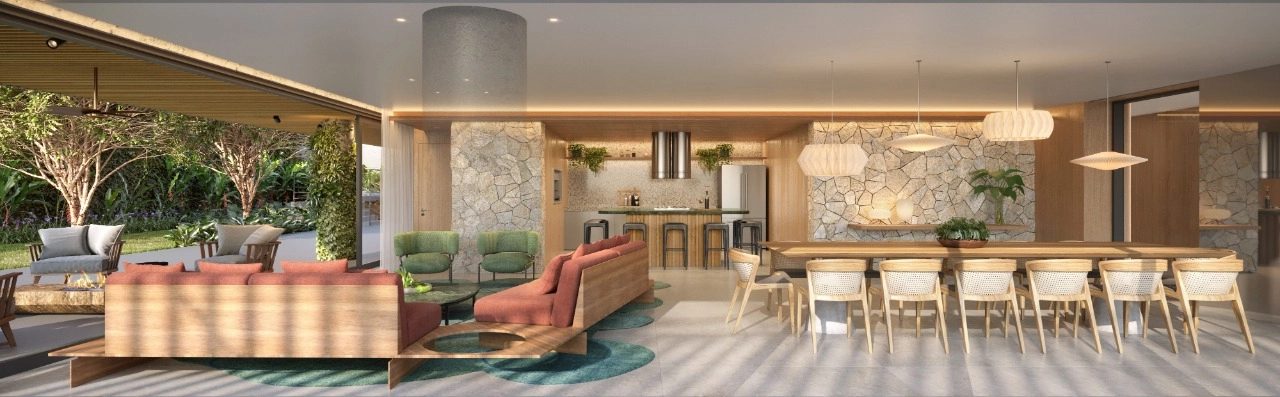 entre os moradores e a natureza, o projeto conta com diferentes plantas e colorações atrativas para a fauna. A brasilidade é representada em 54 espécies nativas da biodiversidade, quebrando as barreiras entre interior e exterior, dando aos habitantes a sensação de viver em meio à natureza.