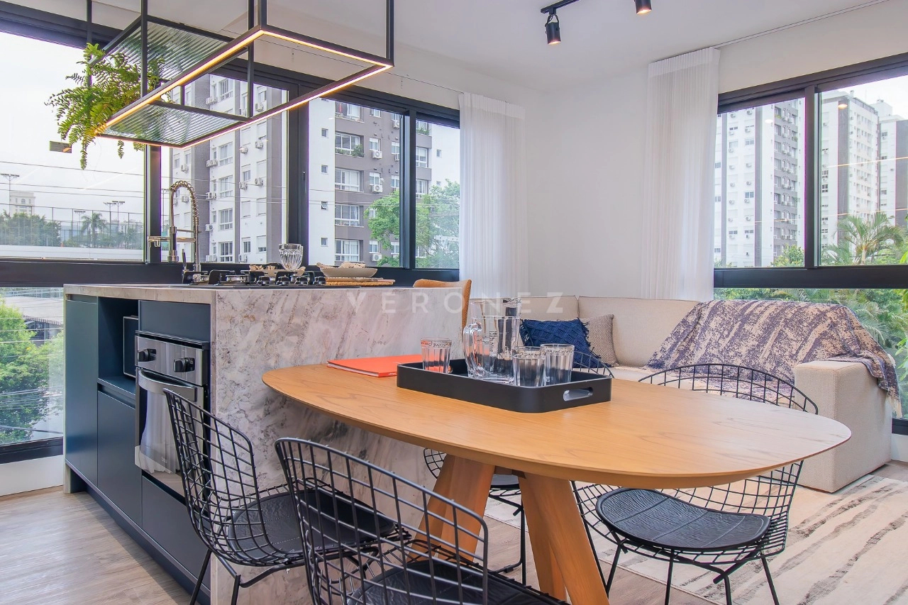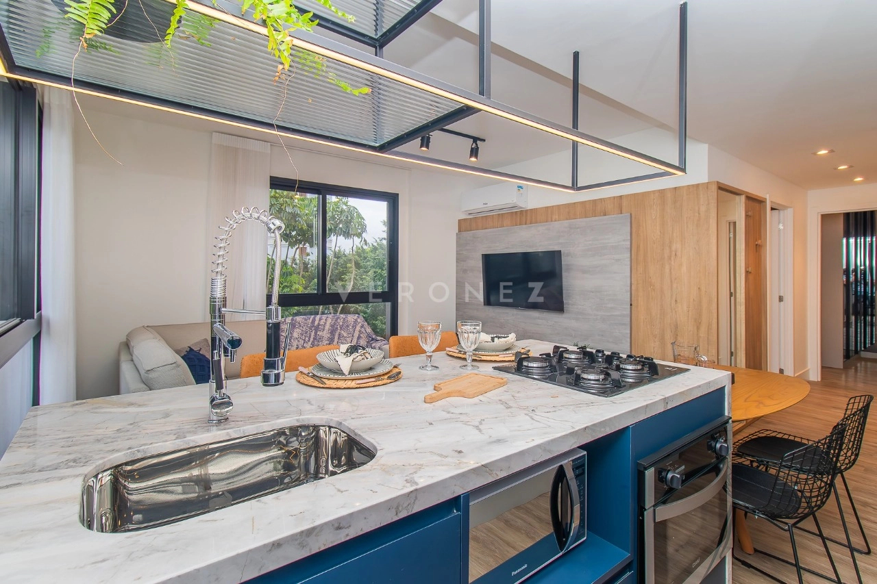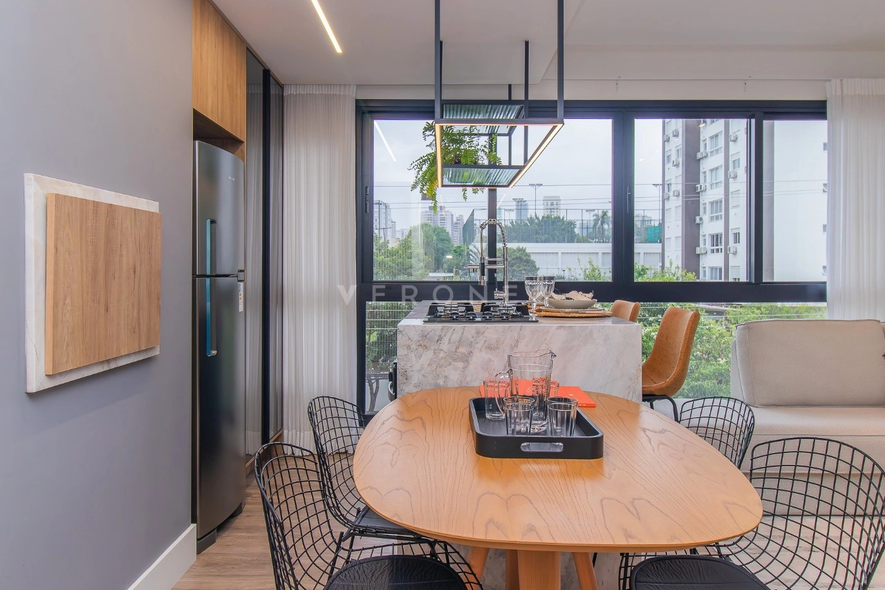 Apartamento Garden com 2 dormitórios, sendo 1 suíte, banheiro social, living integrado à cozinha e amplo terraço de 106m². Apartamento com orientação solar norte e oeste, com amplas esquadrias nos dormitórios e sala. Além disso, o imóvel conta com duas vagas simples de garagem.