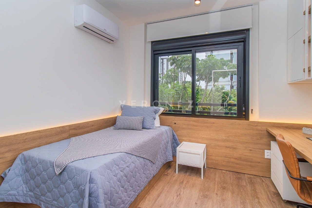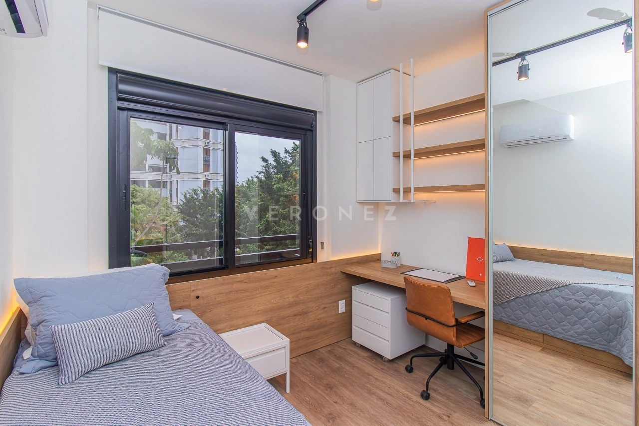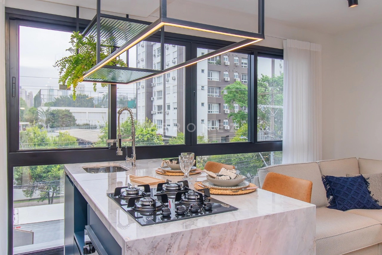 Apartamento Garden com 2 dormitórios, sendo 1 suíte, banheiro social, living integrado à cozinha e amplo terraço de 106m². Apartamento com orientação solar norte e oeste, com amplas esquadrias nos dormitórios e sala. Além disso, o imóvel conta com duas vagas simples de garagem.