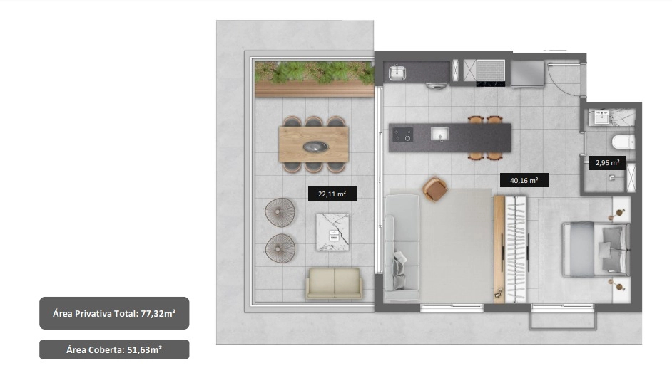 Toda qualidade de vida do entorno se soma a um projeto contemporâneo, onde a flexibilidade e a mobilidade dos espaços expressam um mundo de possibilidades.