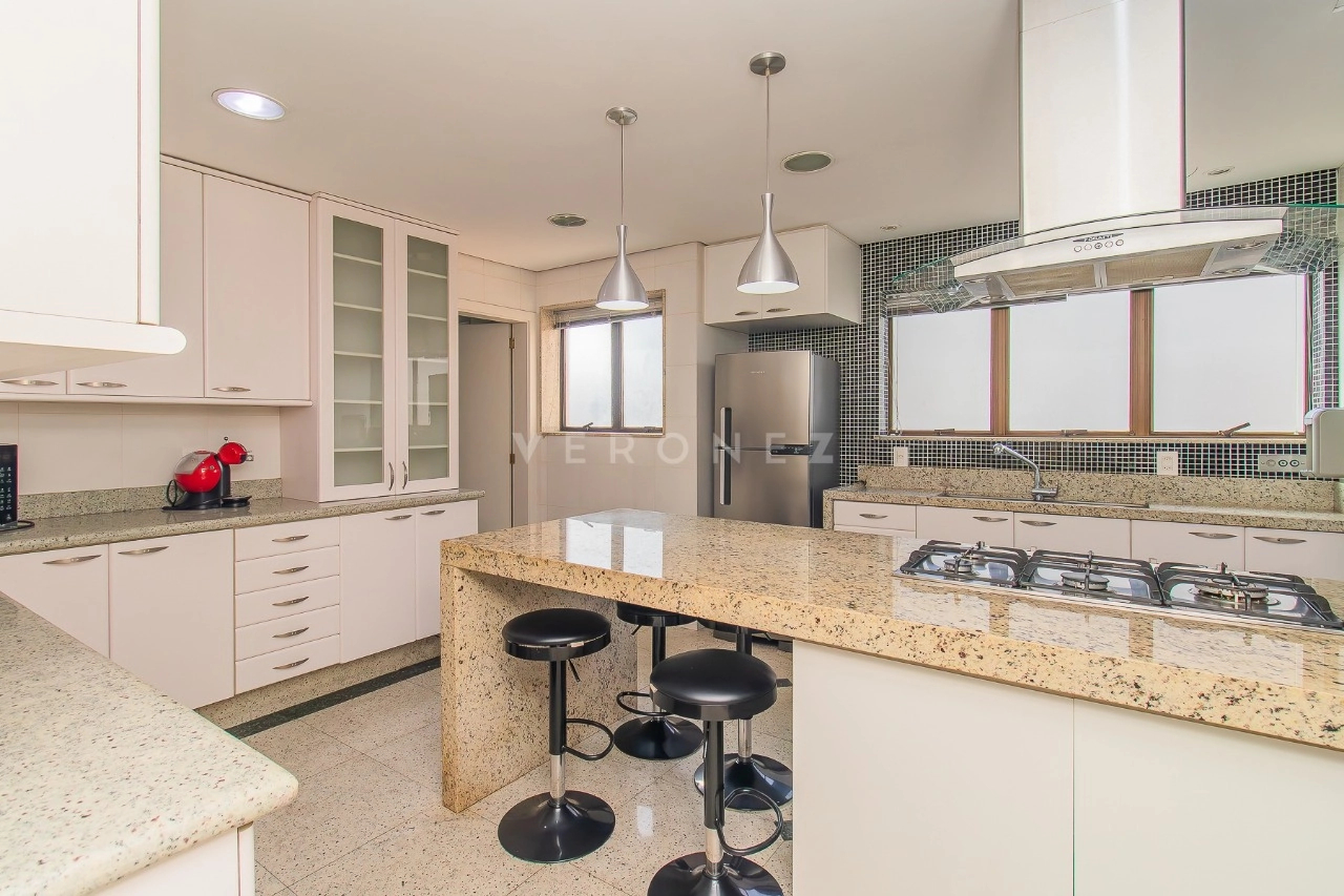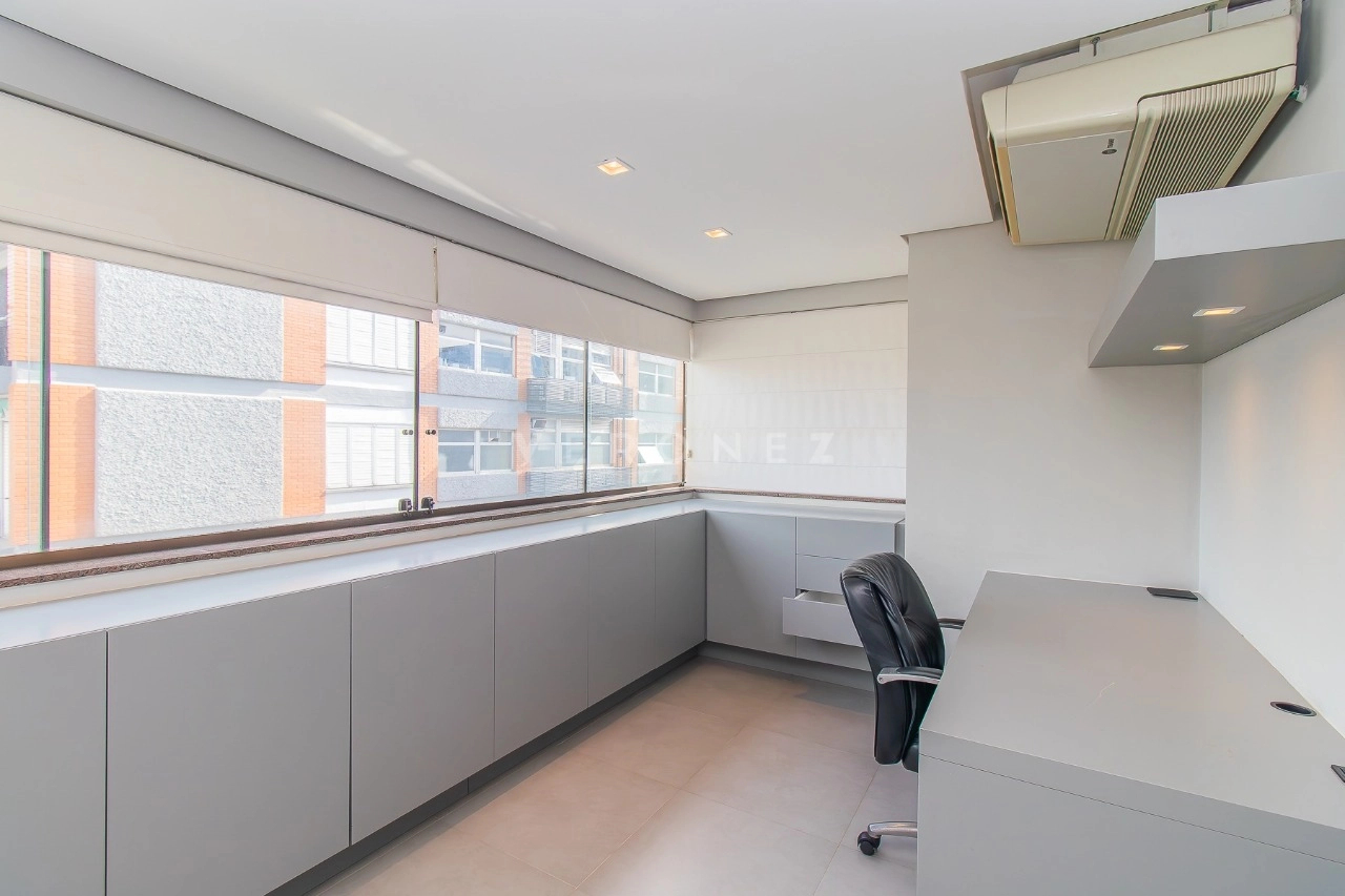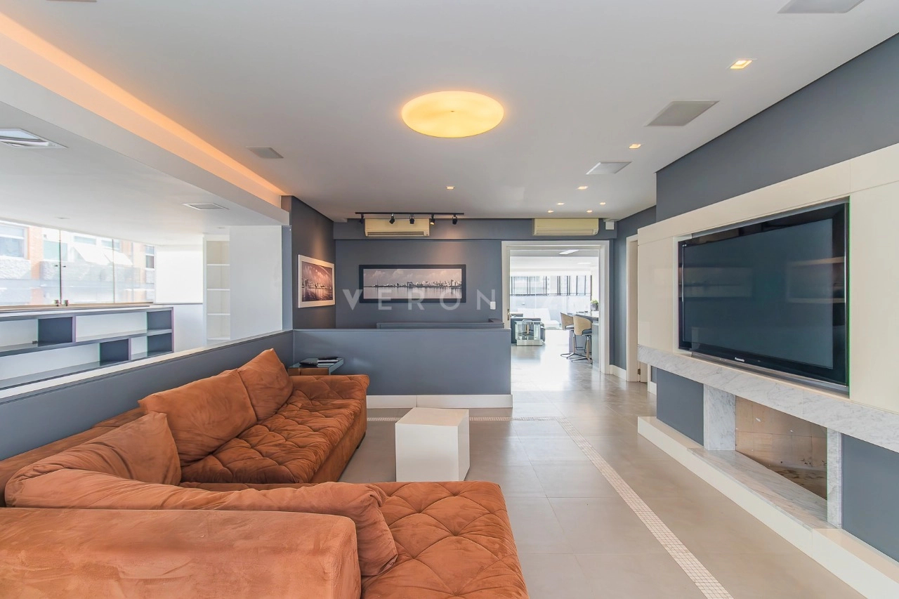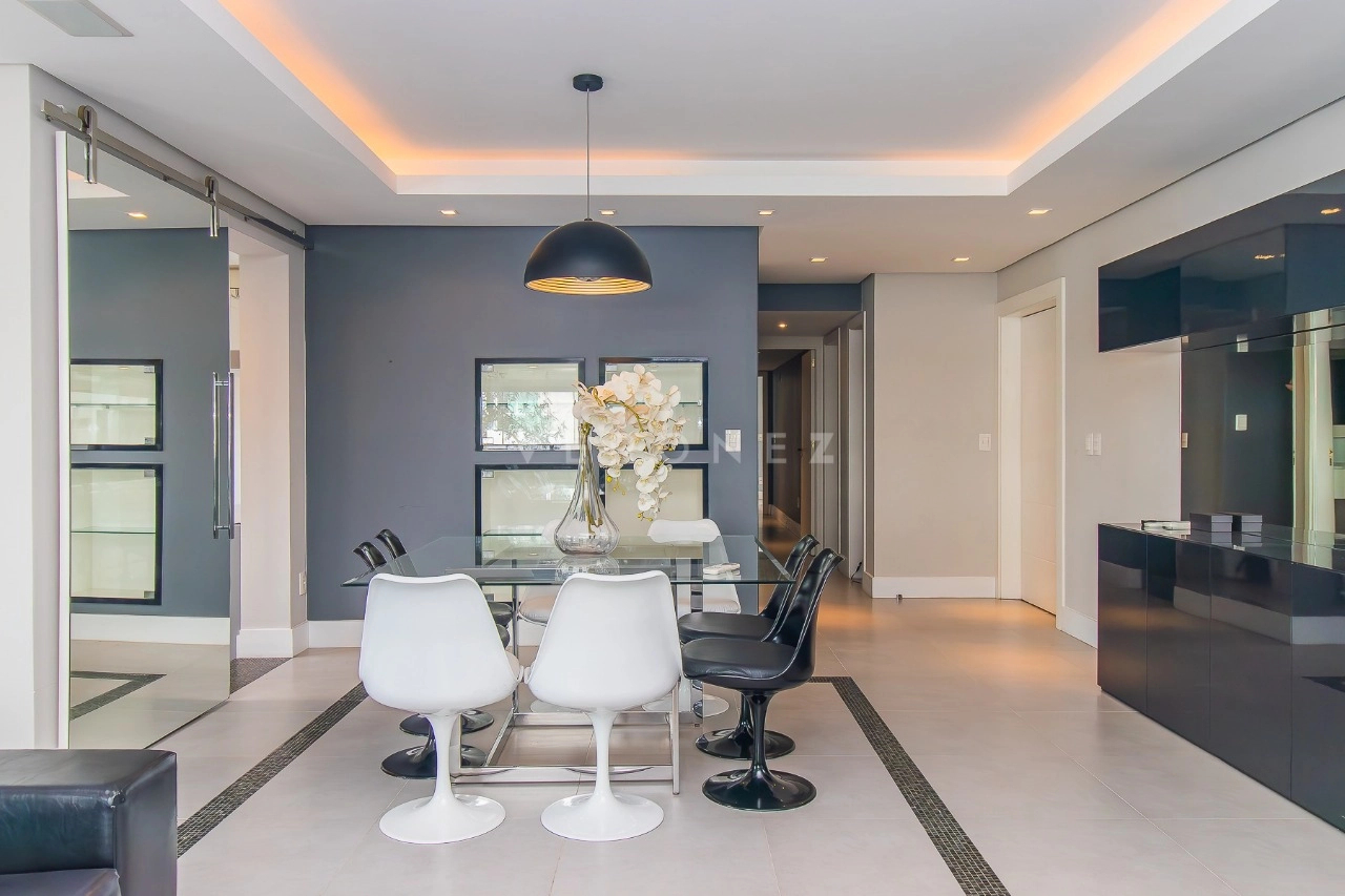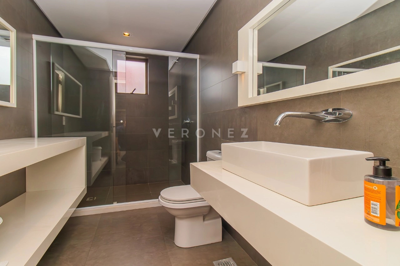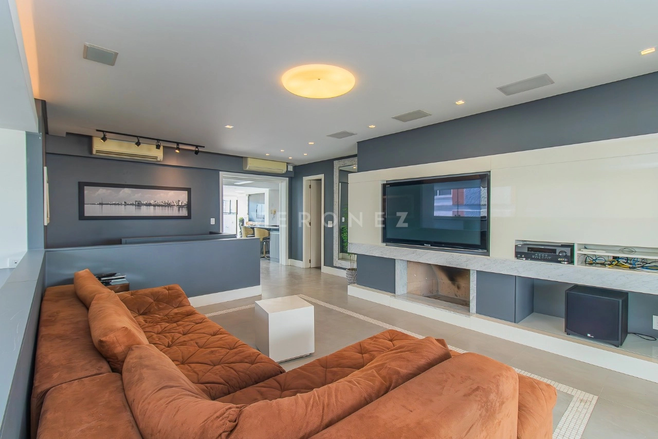 Cobertura duplex de 326,74m² privativos, mobiliada, com linda vista da cidade, na melhor região do bairro Petrópolis. Na parte de baixo três(3) suítes, uma delas master, jacuzzi, piso aquecido e split. Generoso living de três(3) ambientes com lareira e home theater, sala de jantar, lavabo, generoso gabinete interligado com a sala, ampla cozinha com ilha, copa e elevador para mandar mantimentos para a cozinha de cima, ampla lavanderia separada. No andar de cima temos ampla academia, 2 generosas salas com lareira, sendo que uma delas tem gabinete integrado, e a outra tem amplo espaço gourmet, sala de jantar, uma grande jacuzzi e saída para o pátio. Finamente decorado por arquiteto com lindos móveis sob medida em todo o apartamento. O apartamento é bem ventilado e pega sol o dia todo com 5 vagas de garagem individuais lado a lado.
