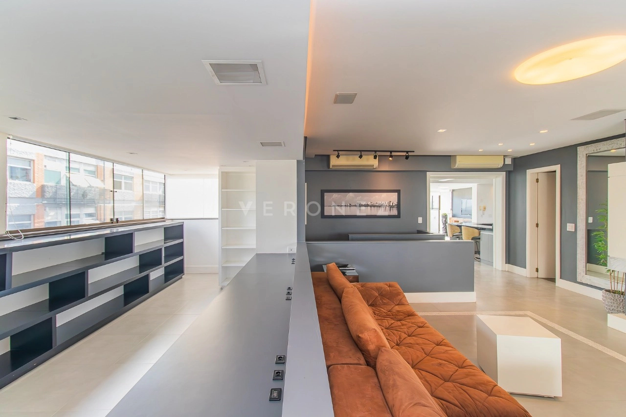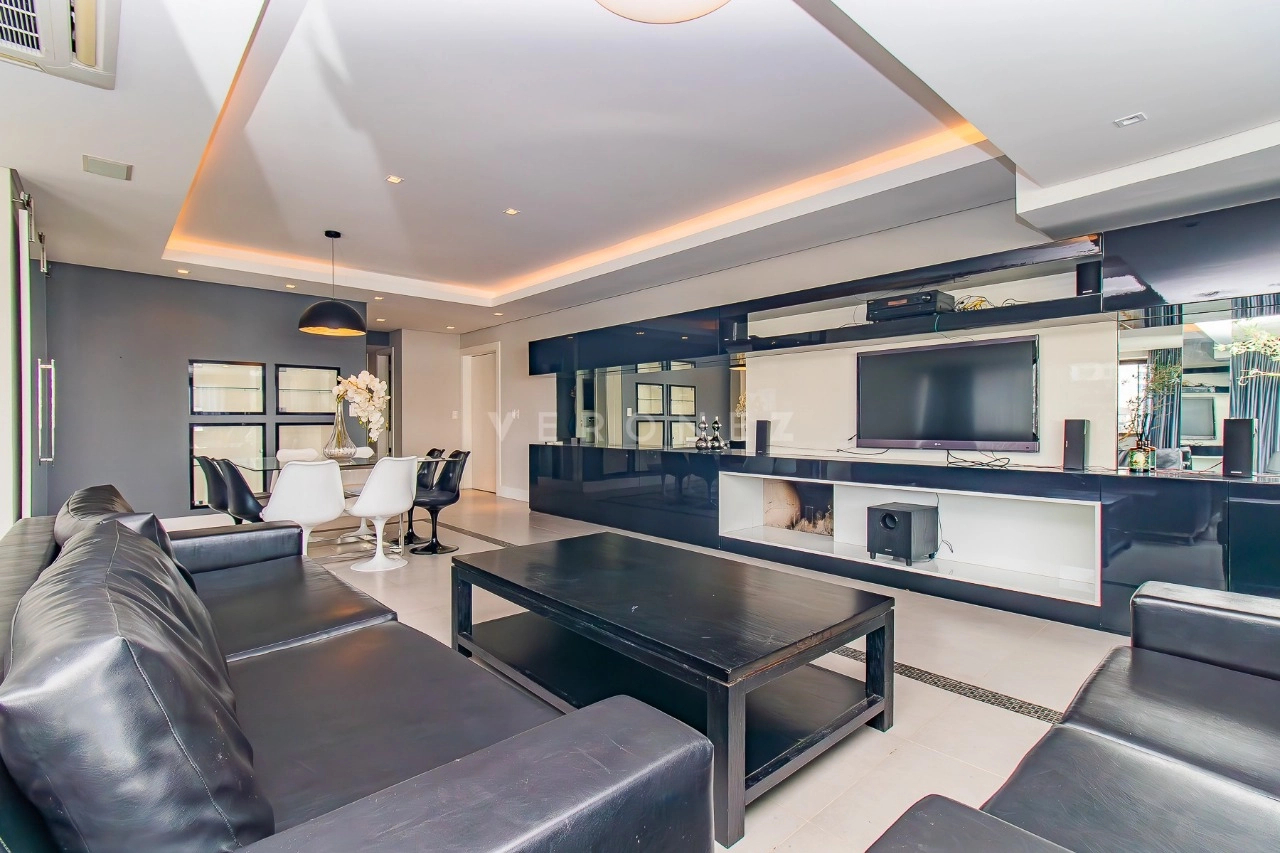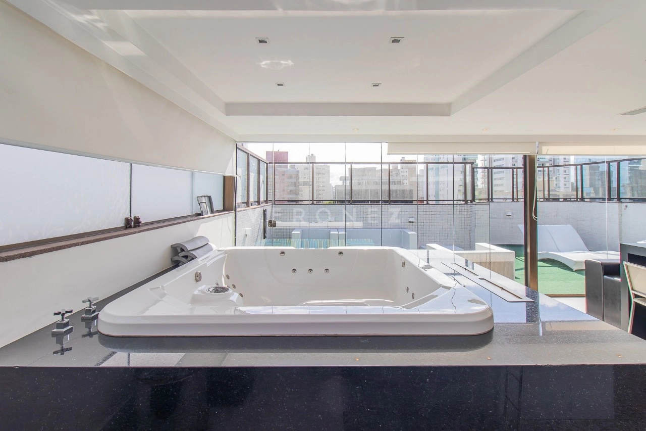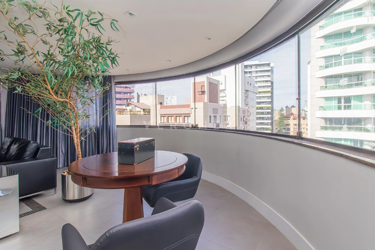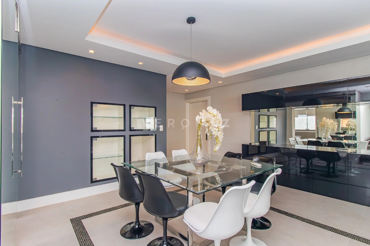 Cobertura duplex de 326,74m² privativos, mobiliada, com linda vista da cidade, na melhor região do bairro Petrópolis. Na parte de baixo três(3) suítes, uma delas master, jacuzzi, piso aquecido e split. Generoso living de três(3) ambientes com lareira e home theater, sala de jantar, lavabo, generoso gabinete interligado com a sala, ampla cozinha com ilha, copa e elevador para mandar mantimentos para a cozinha de cima, ampla lavanderia separada. No andar de cima temos ampla academia, 2 generosas salas com lareira, sendo que uma delas tem gabinete integrado, e a outra tem amplo espaço gourmet, sala de jantar, uma grande jacuzzi e saída para o pátio. Finamente decorado por arquiteto com lindos móveis sob medida em todo o apartamento. O apartamento é bem ventilado e pega sol o dia todo com 5 vagas de garagem individuais lado a lado.