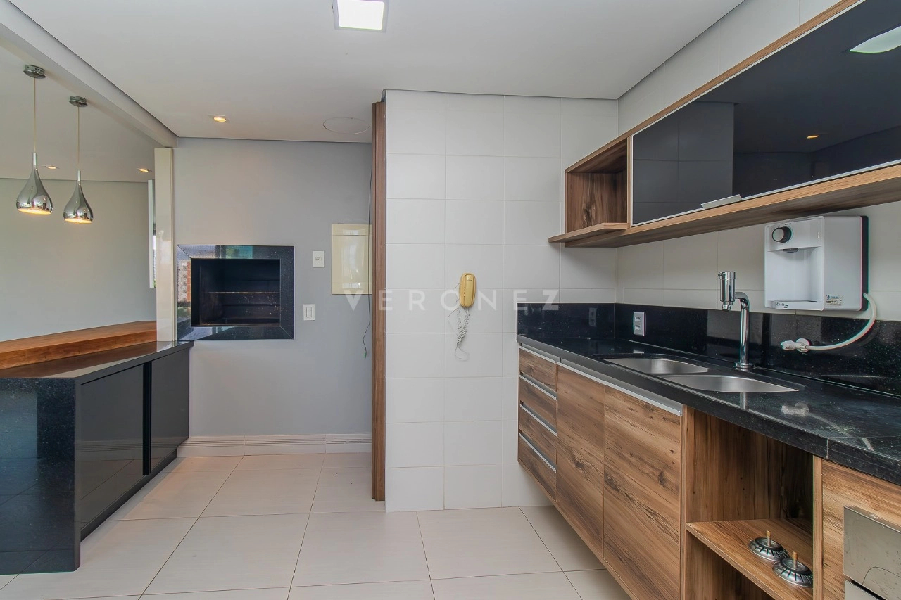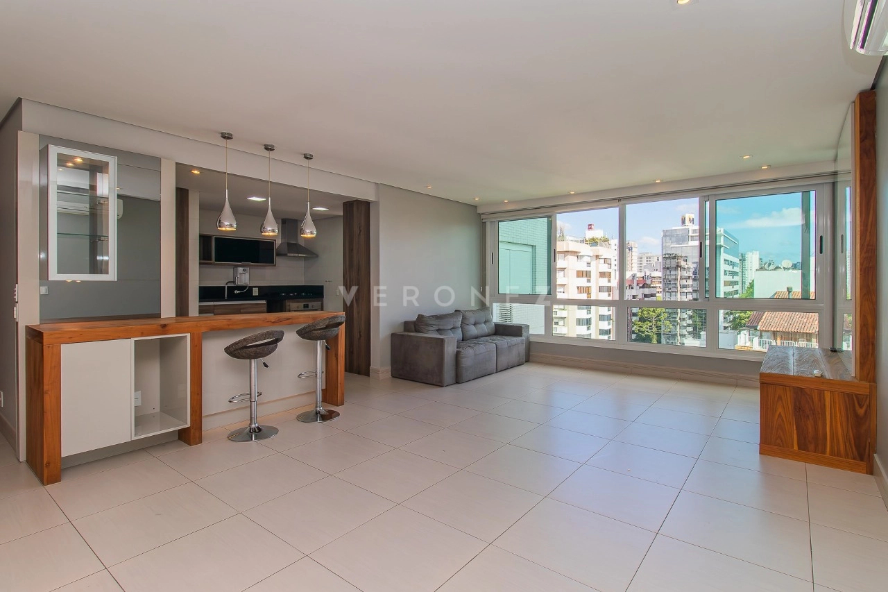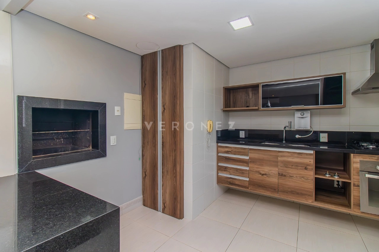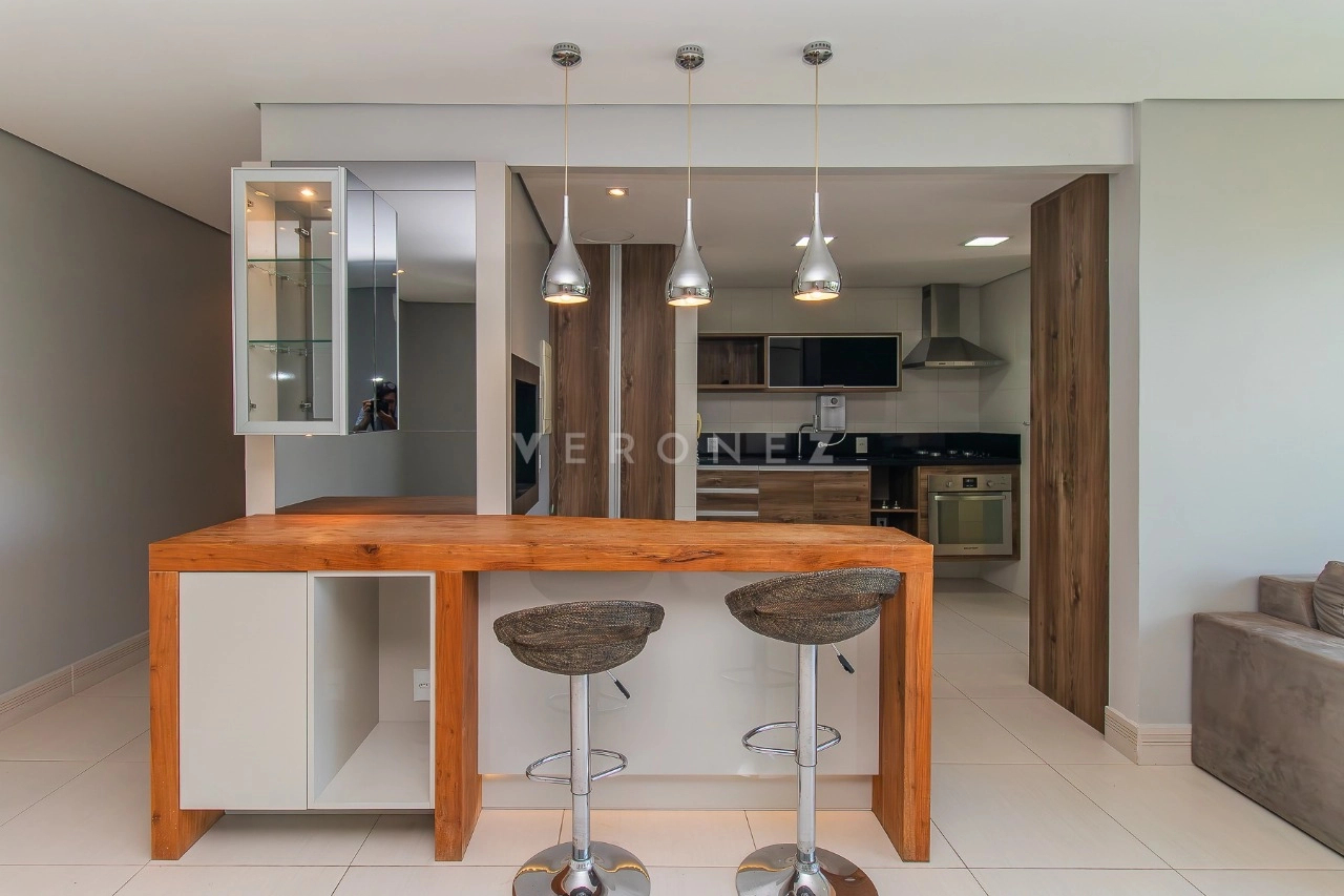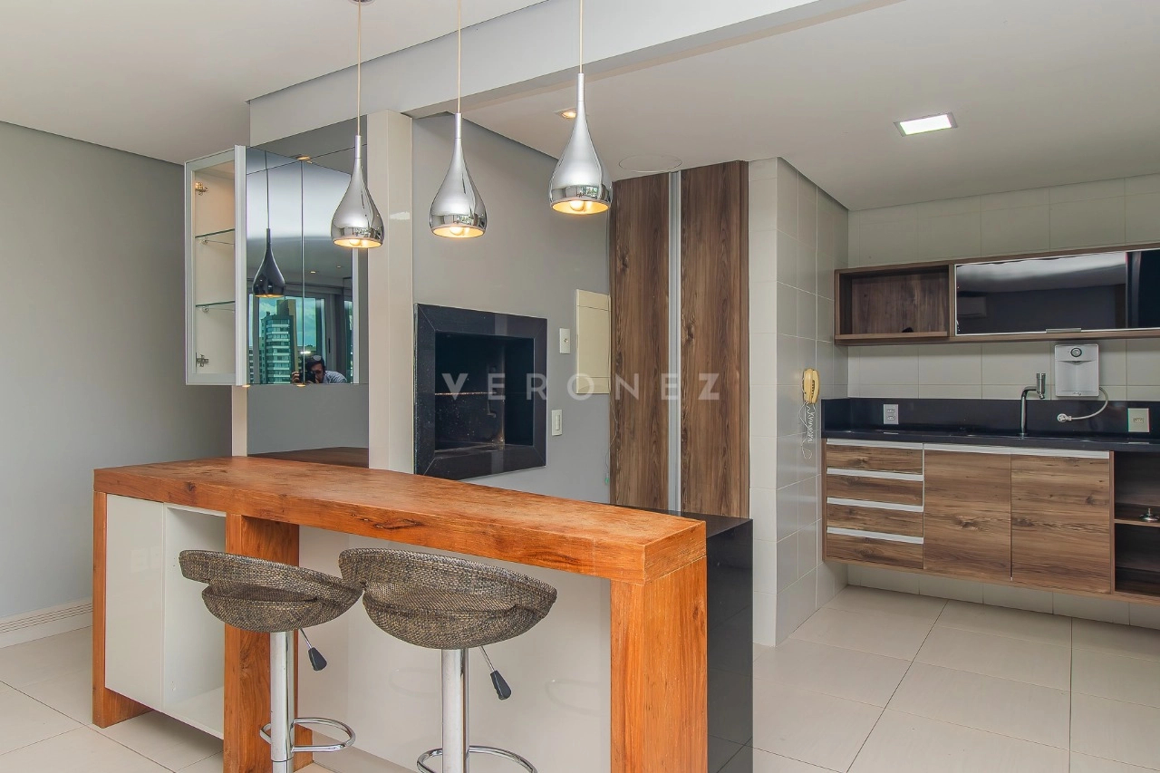 Este excelente e aconchegante apartamento, possui aproximadamente 95m² de área privativa, living amplo com sofá, 01 dormitório com uma linda vista, sendo suíte, escritório com bancada, 01 cozinha americana completa com cooktop, churrasqueira e forno elétrico, área de serviço com tanque e lavabo.