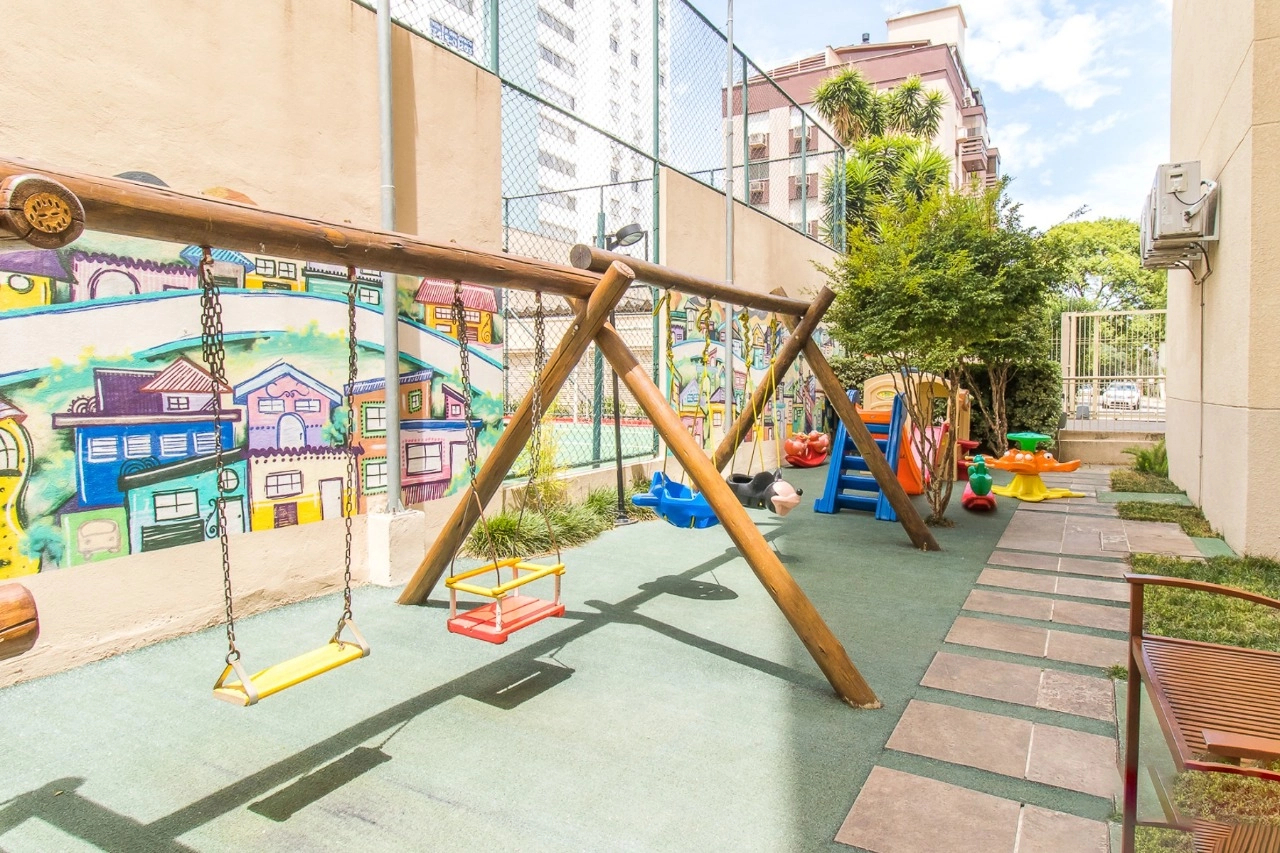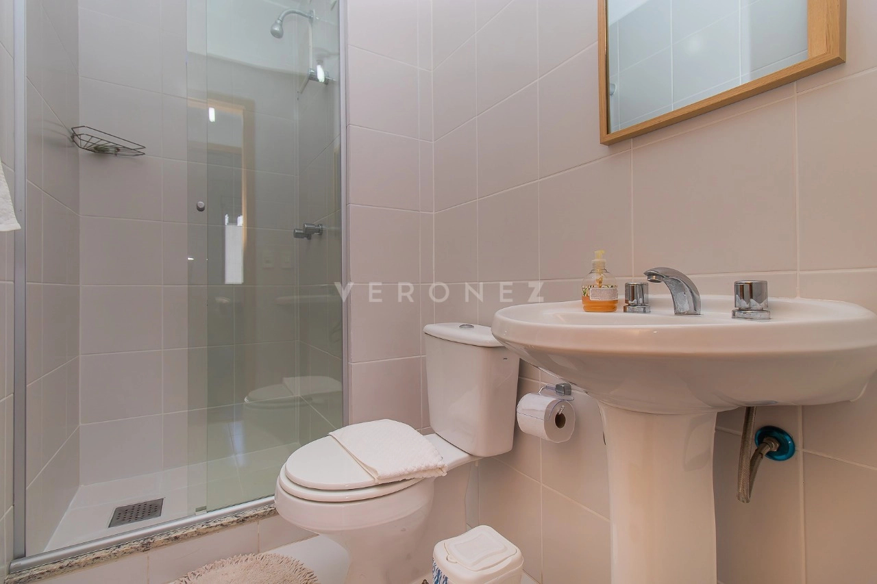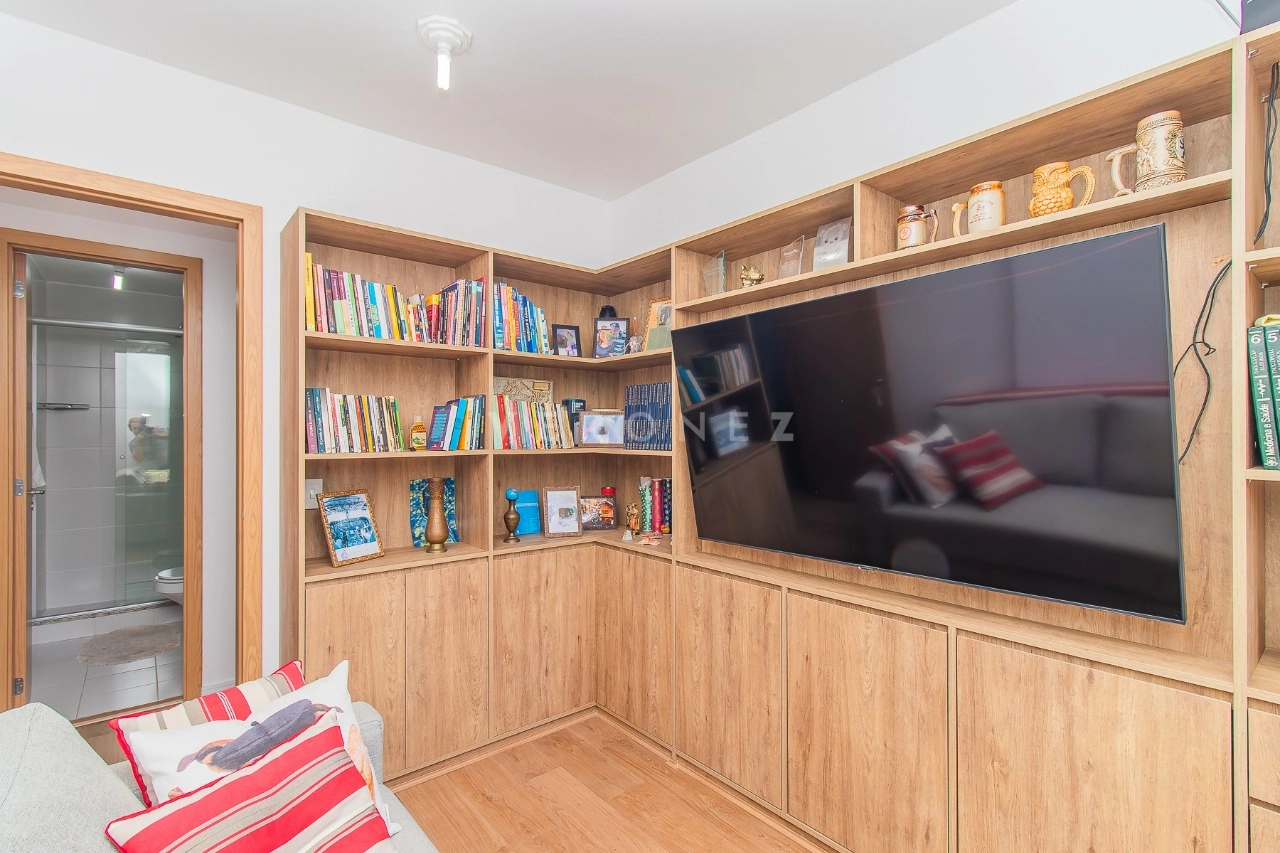 Apartamento de dois dormitórios sendo um com suíte, com 62m² de área privativa. Living de dois ambientes mais a sacada com churrasqueira, cozinha americana com área de serviço, quartos de ótimo tamanho com móveis sob medida. Ficam todos os móveis fixos dos quartos, cozinha e banheiros.