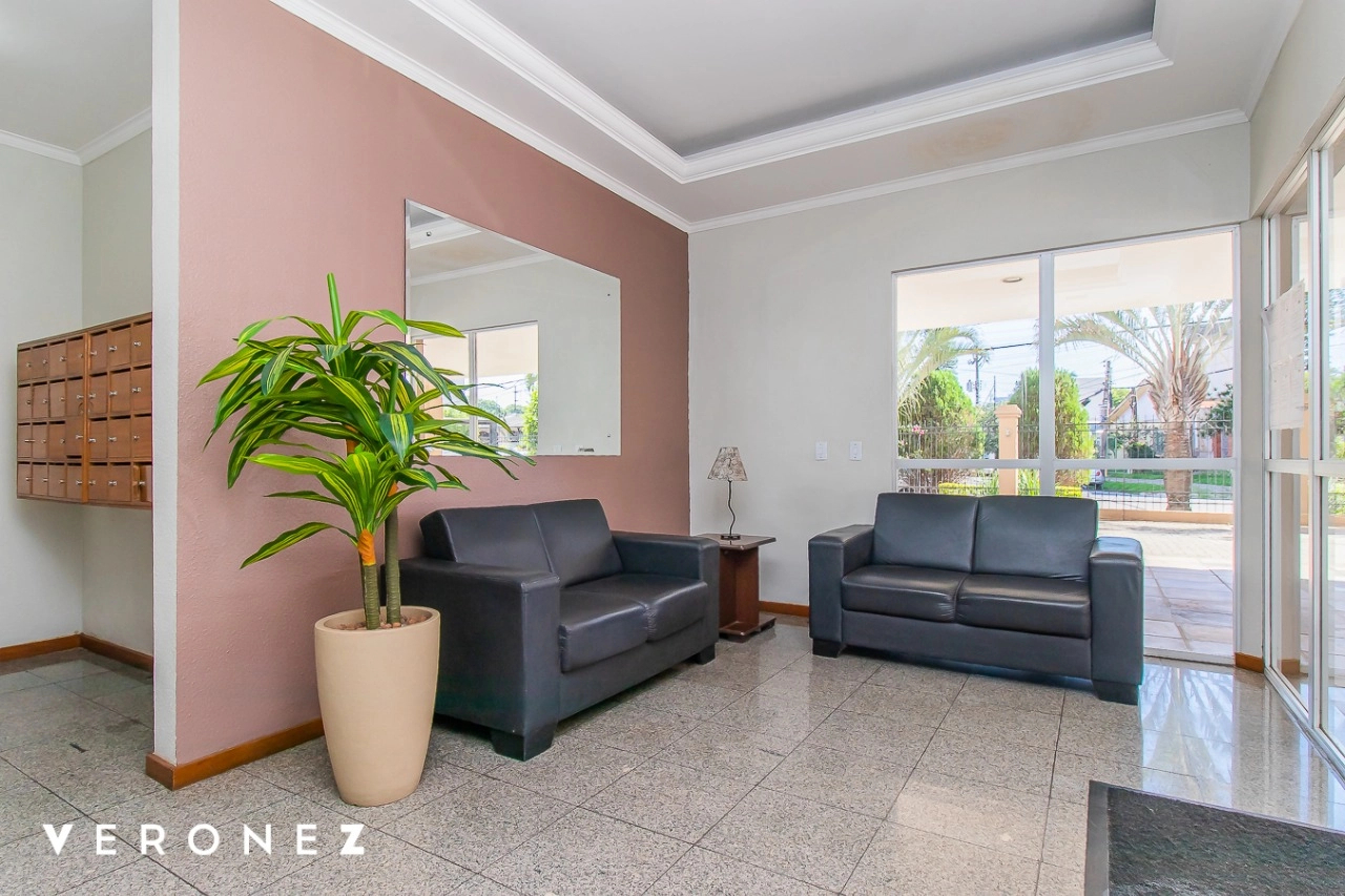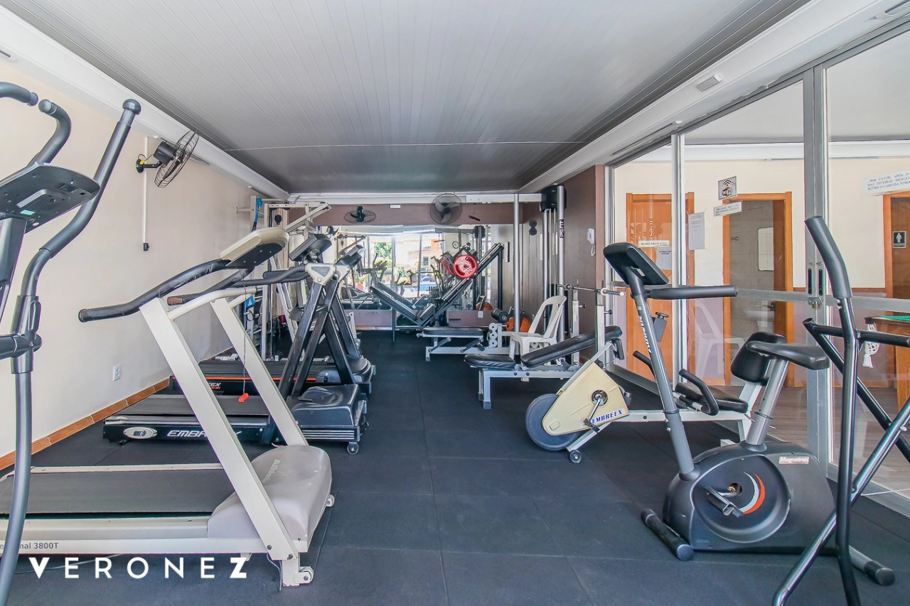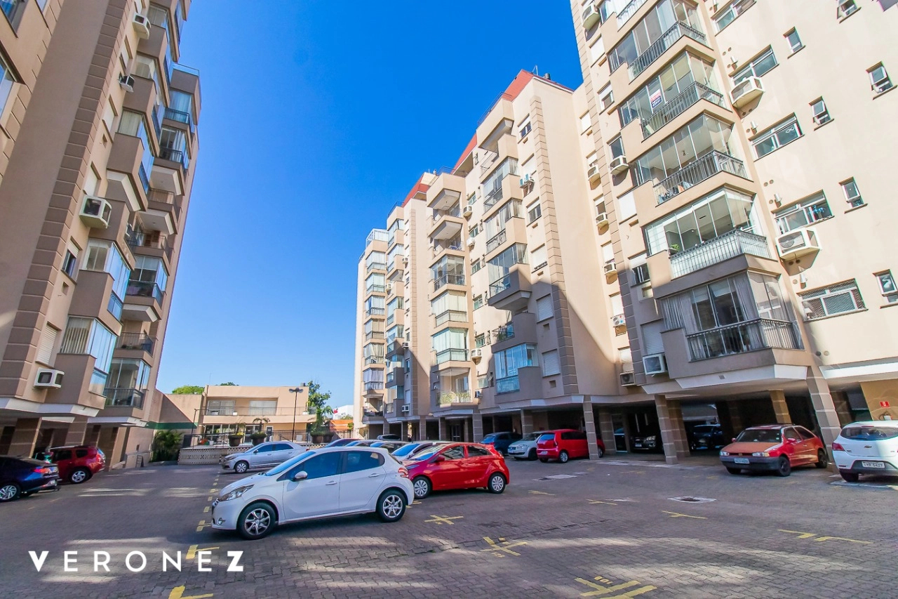 A cobertura conta com 03 dormitórios, sendo um deles suíte, 3 banheiros e duas vagas de garagem. Sala de estar estendida envidraçada.