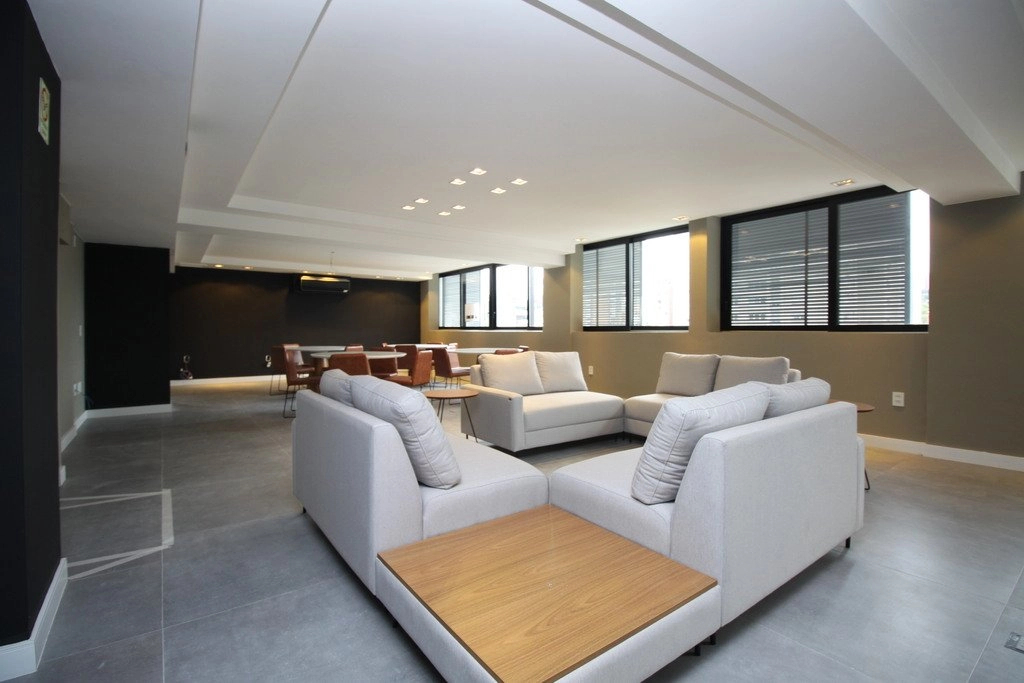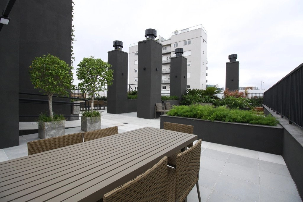 Studio com garden, alto padrão, 49,73 m² de área privativa total, sendo 41,13m² de área de studio e 8,6m² de área garden, banheiro e cozinha americana; 1 vaga.