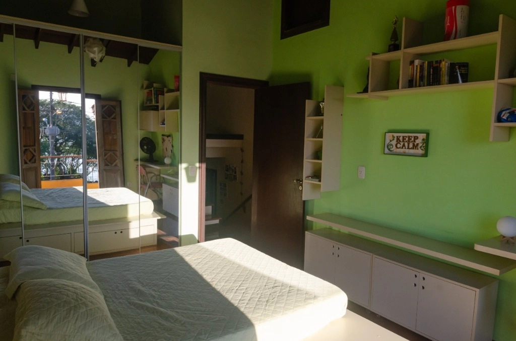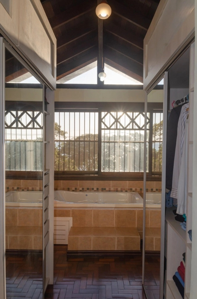 Pavimento superior: 3 dormitórios, sendo 1 suíte máster com closet e banheira de hidro, 1 dormitório com closet, 1 dormitório com possibilidade de mezanino, todos com sacadas, sala íntima aberta (para Home Office ou sala de ginástica), banheiro.