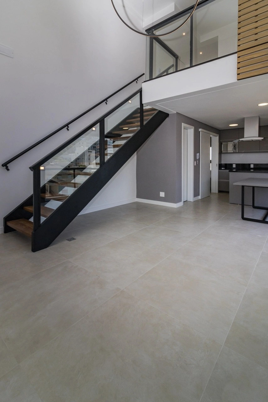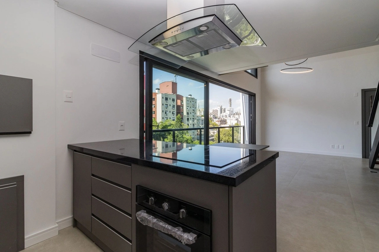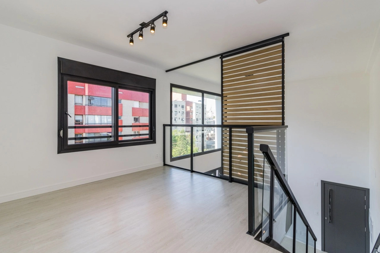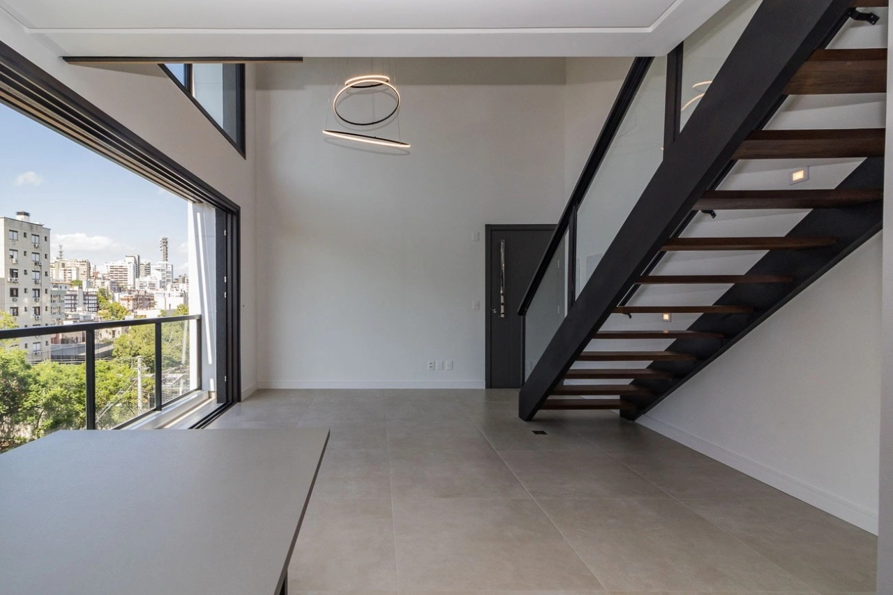 Apartamento duplex de 76 m² de área privativa, 1 suíte, living para 2 ambientes com sacada, lavabo, cozinha com churrasqueira e área de serviço separada. Possui 2 vagas de garagem e depósito.
