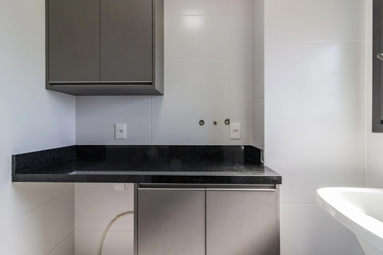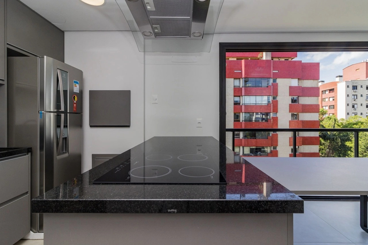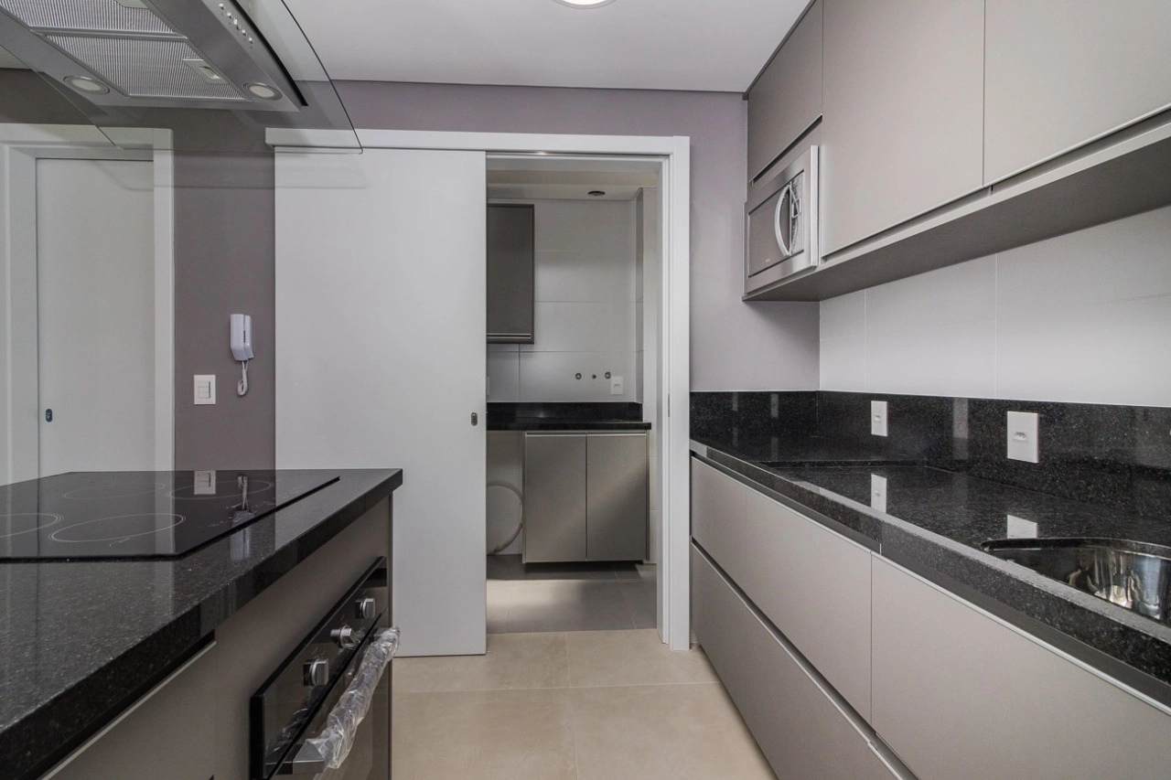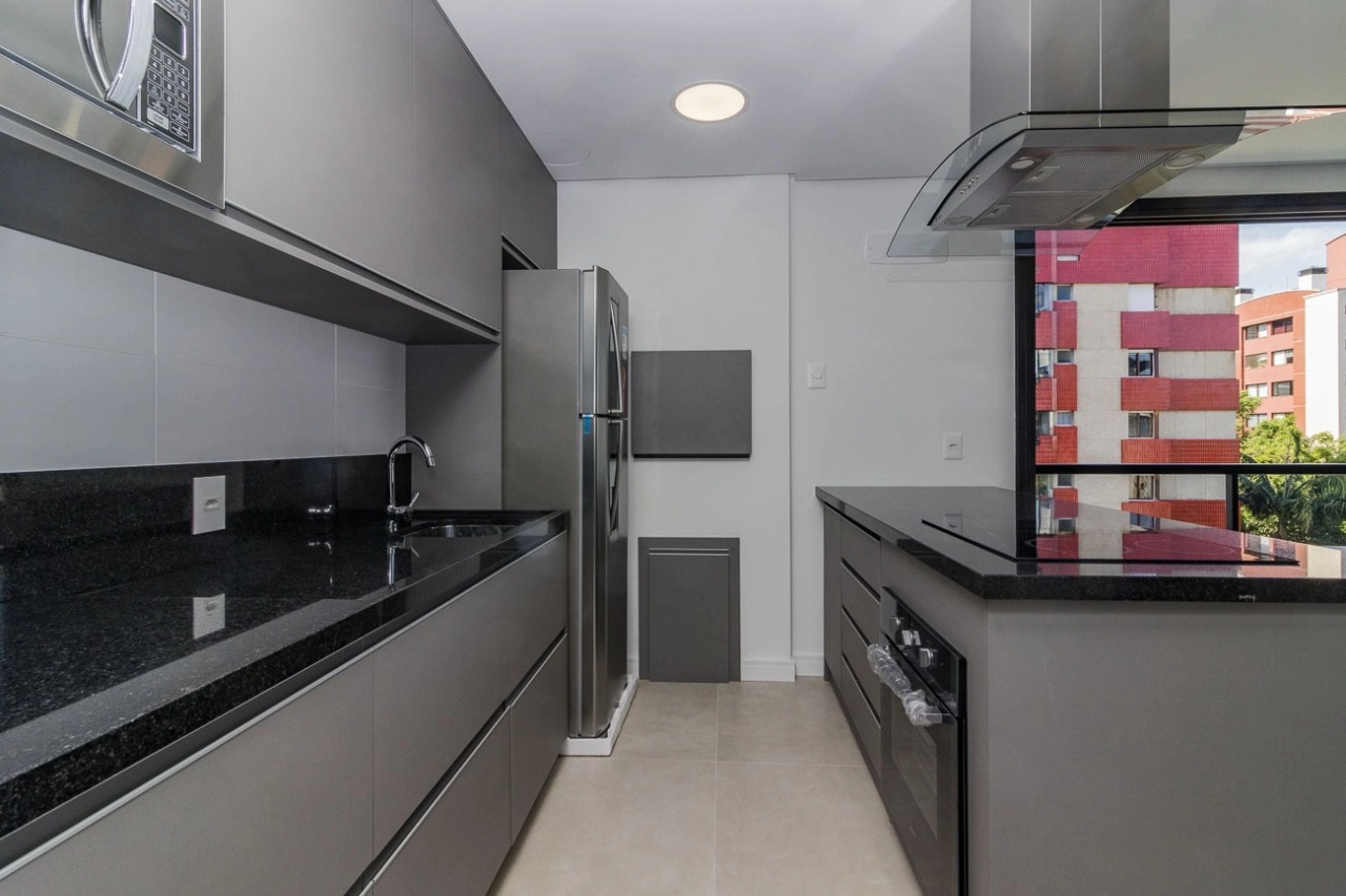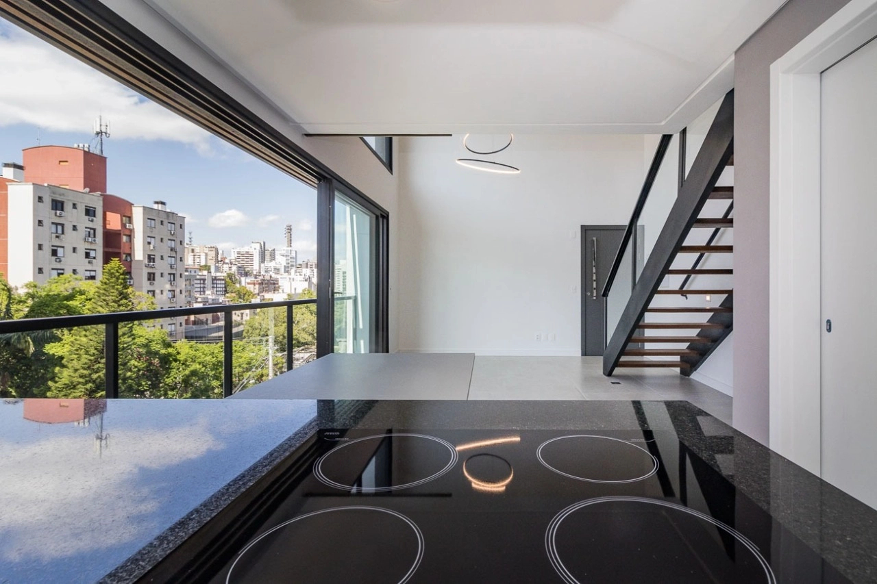 Apartamento duplex de 76 m² de área privativa, 1 suíte, living para 2 ambientes com sacada, lavabo, cozinha com churrasqueira e área de serviço separada. Possui 2 vagas de garagem e depósito.