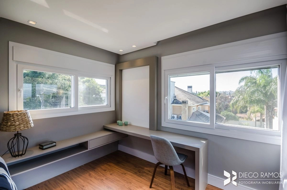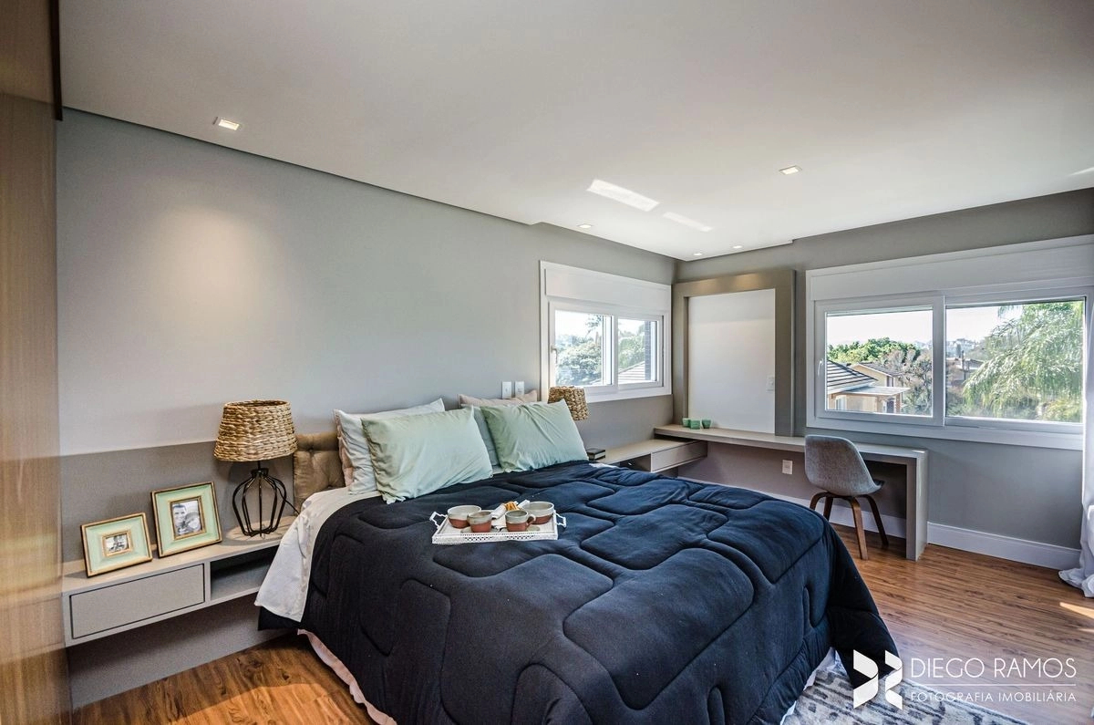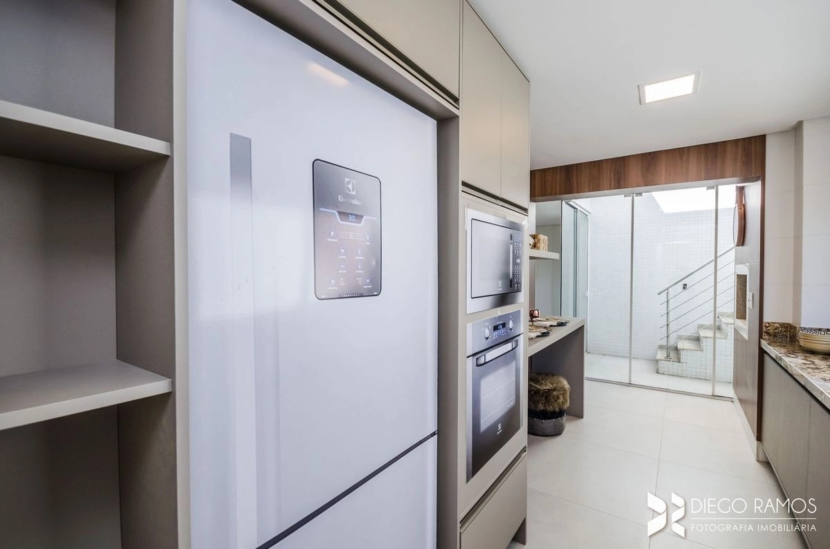 Mobiliado, living para 3 ambientes com lareira, lavabo, 3 suítes, sendo 1 master, cozinha com lavanderia separada e banho auxiliar; andar superior com terraço. Esquadrias em PVC motorizadas, espera para automação em todos os ambientes, garagem para até 03 carros.