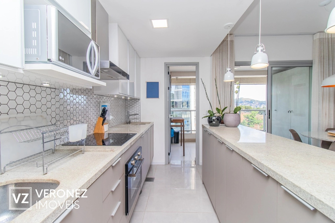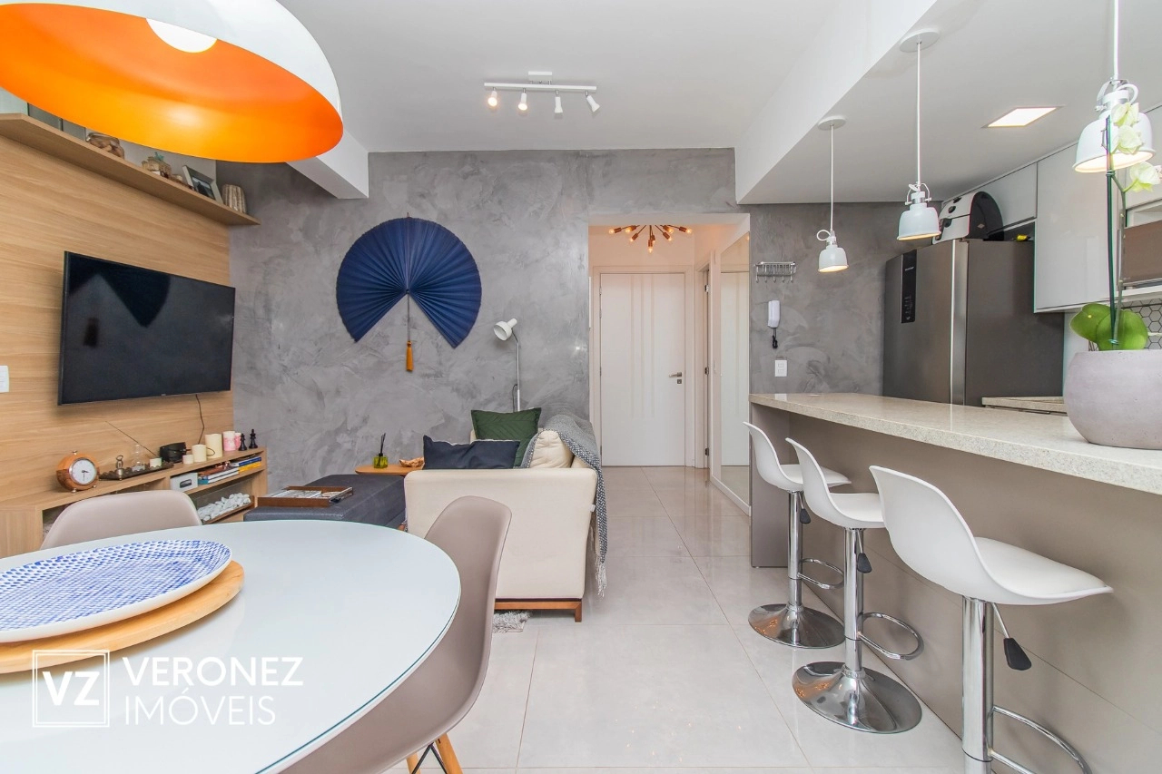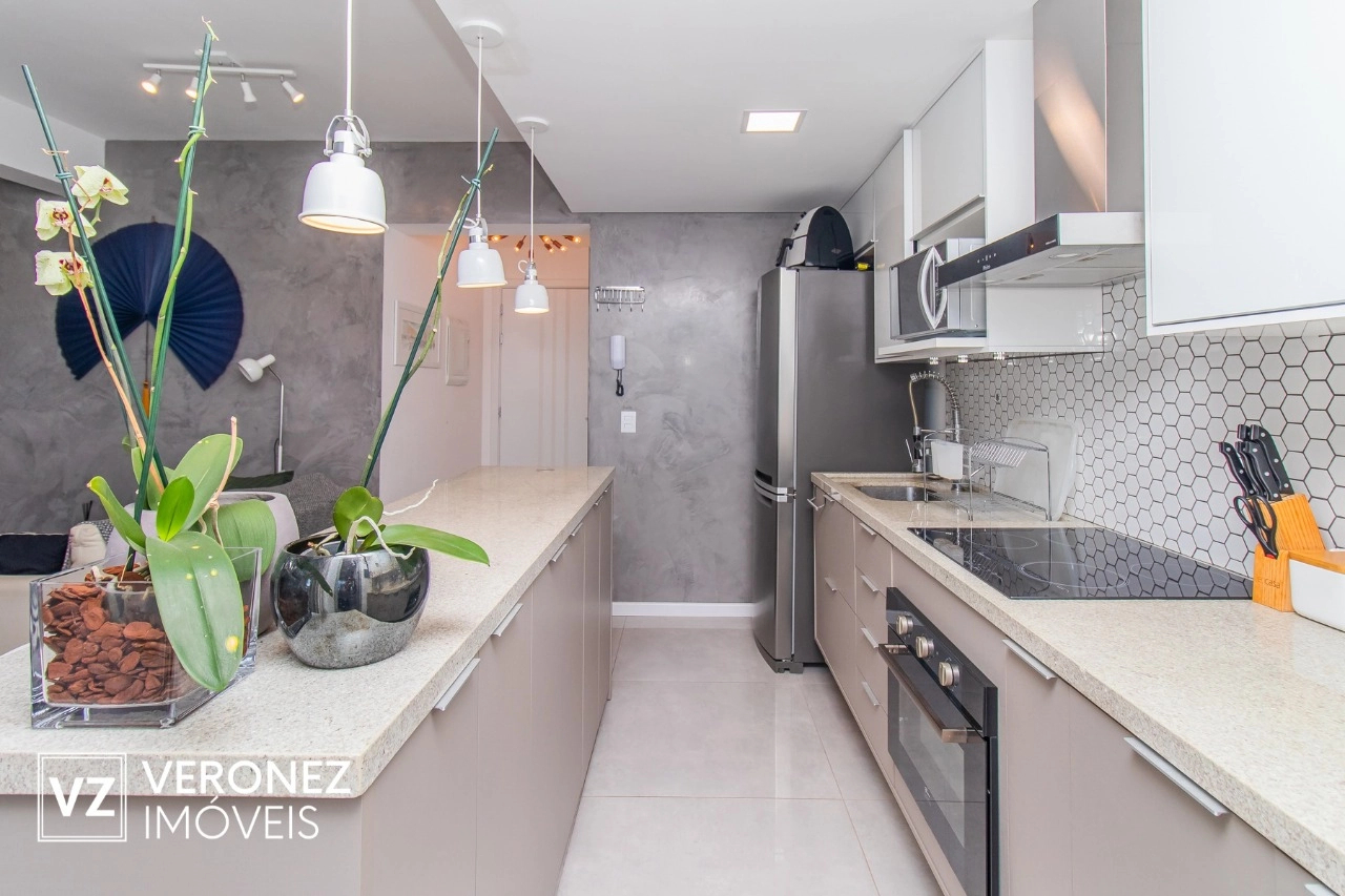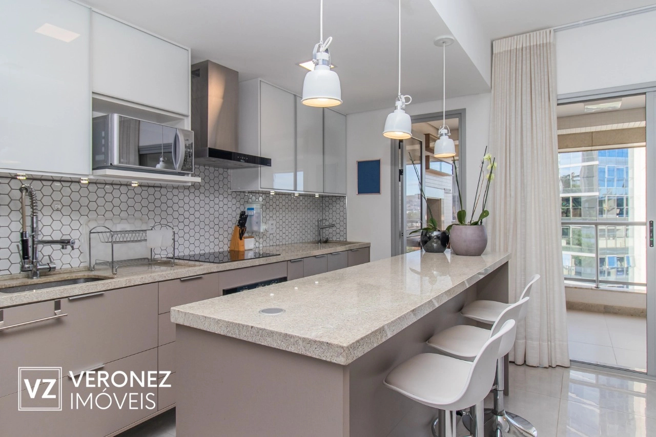 Com 77m² privativos, 2 suítes sendo uma com closet, lavabo, cozinha americana integrada ao living, sacada aberta com churrasqueira e vaga dupla de garagem.