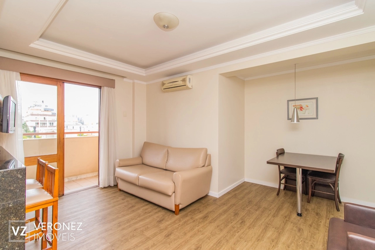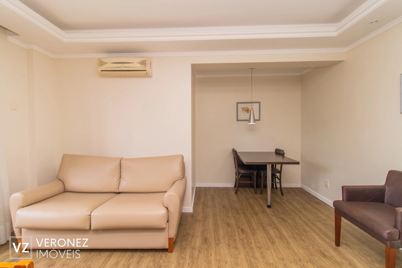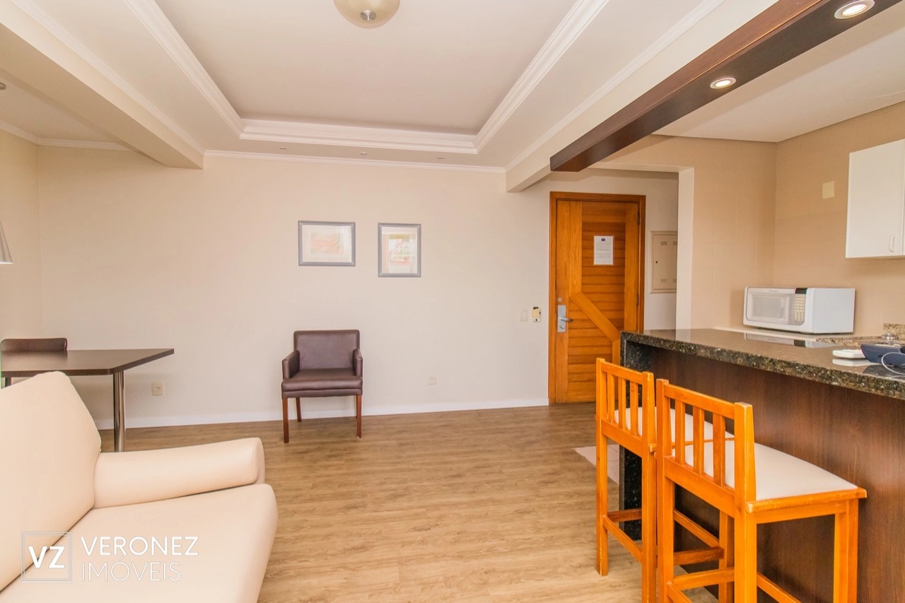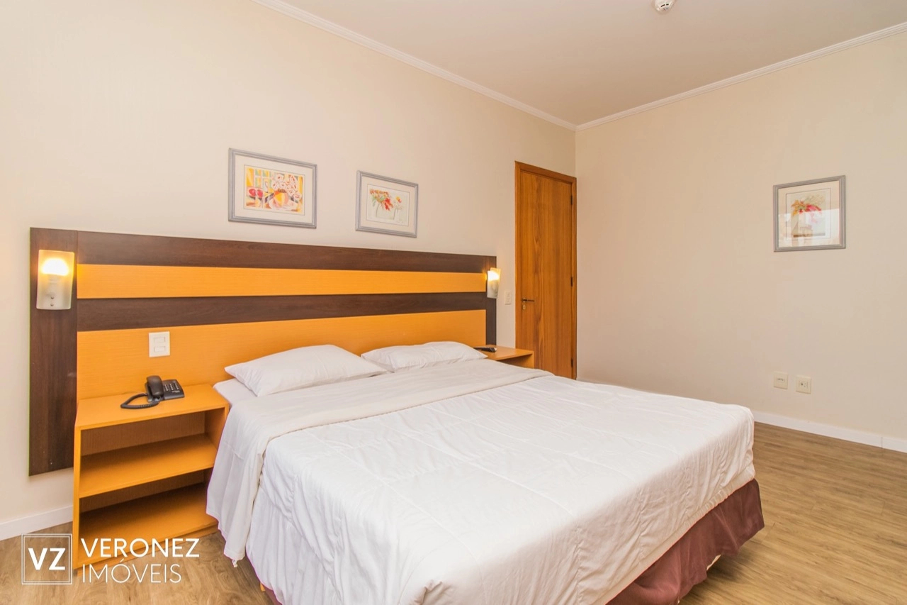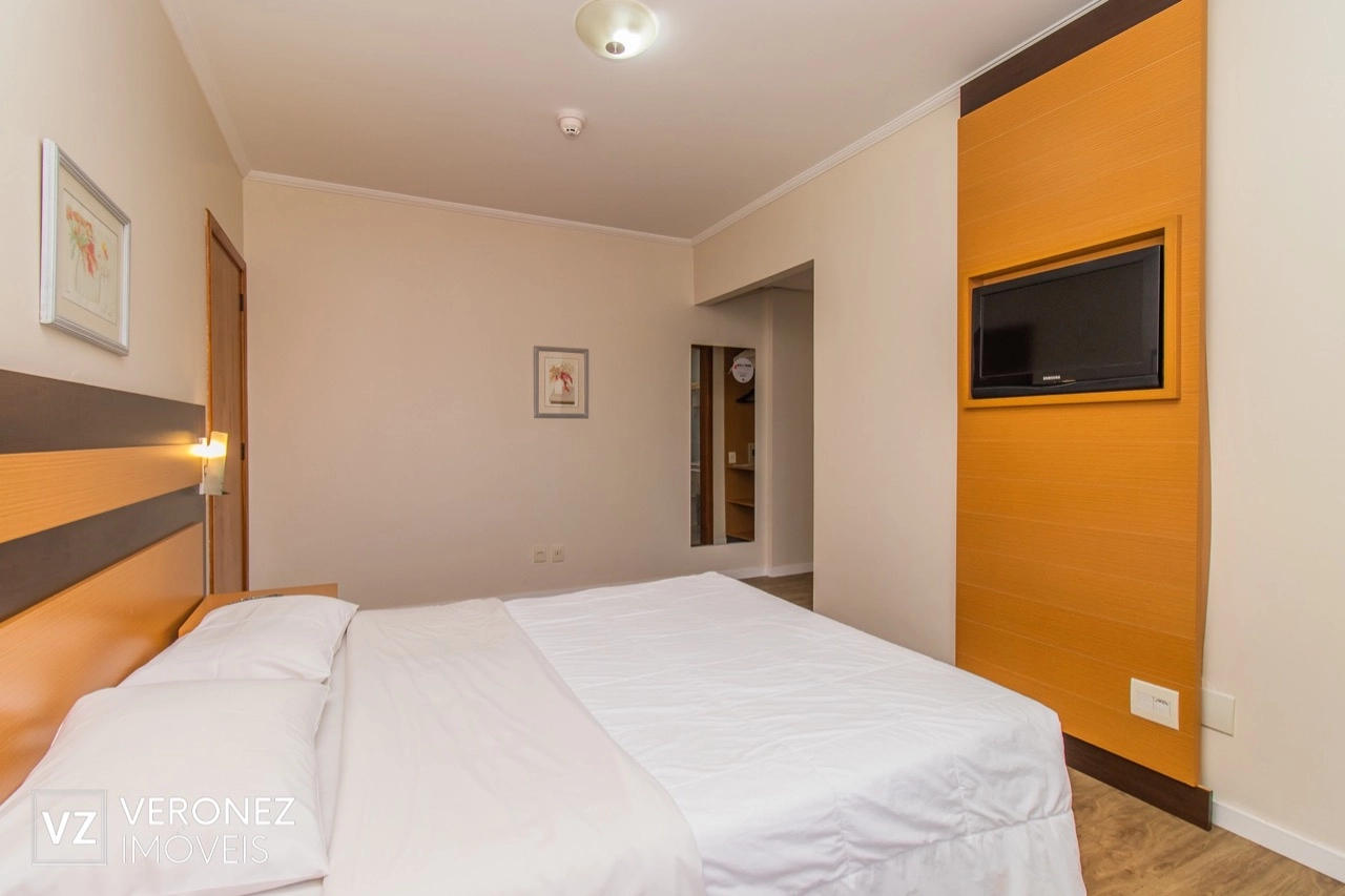 O apartamento conta com 58m2 divididos entre sala de estar com cozinha americana e sacada e 1 dormitório com suíte e sacada e dispõe de serviço de camareira diário já incluso no condomínio.