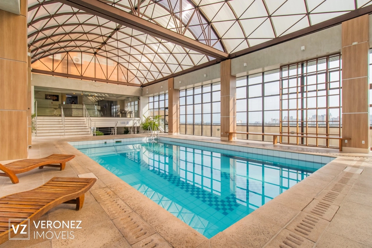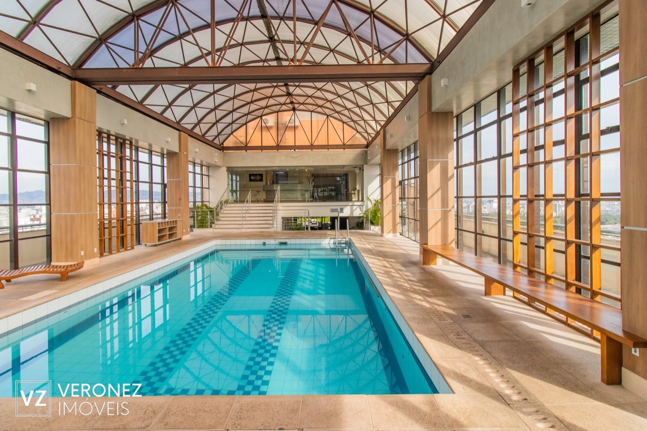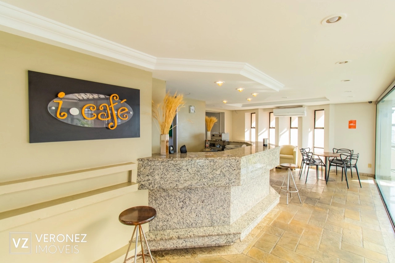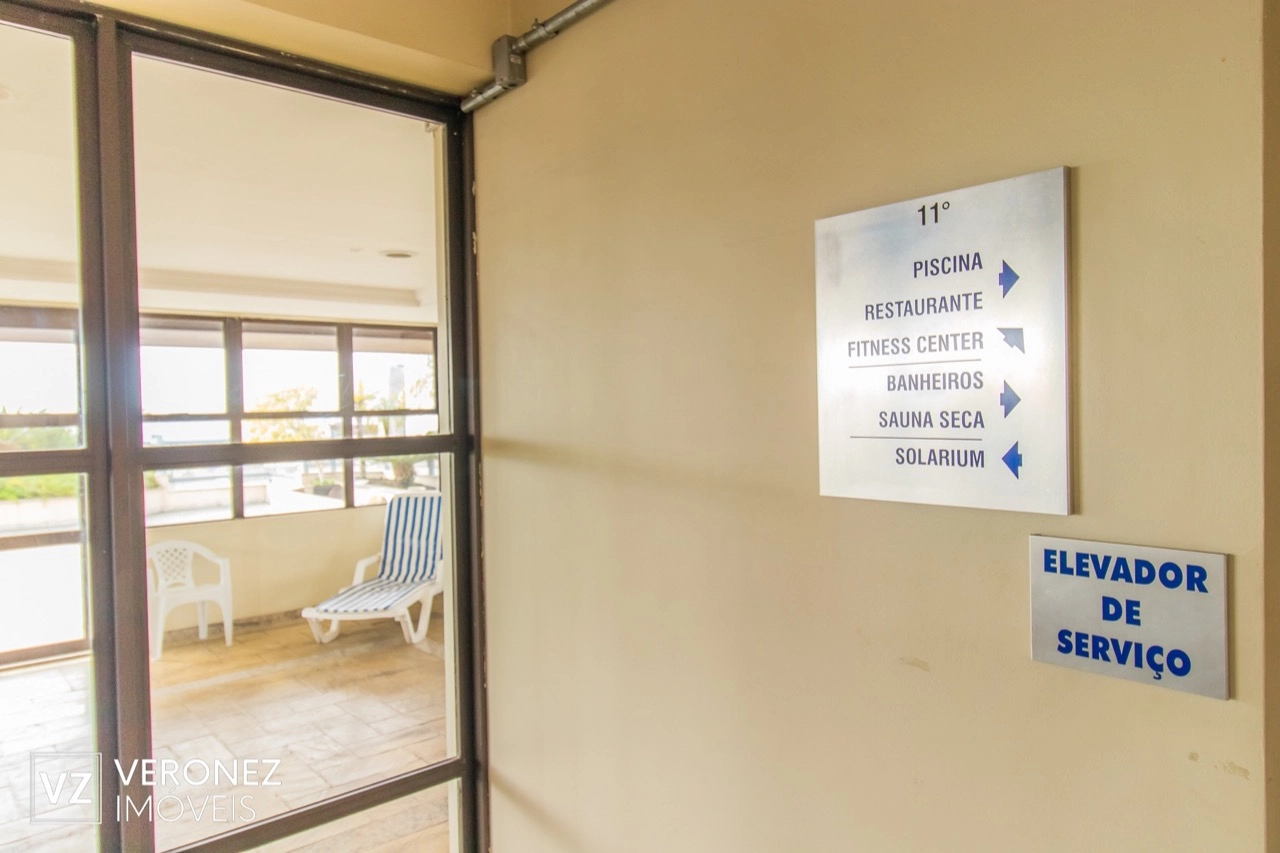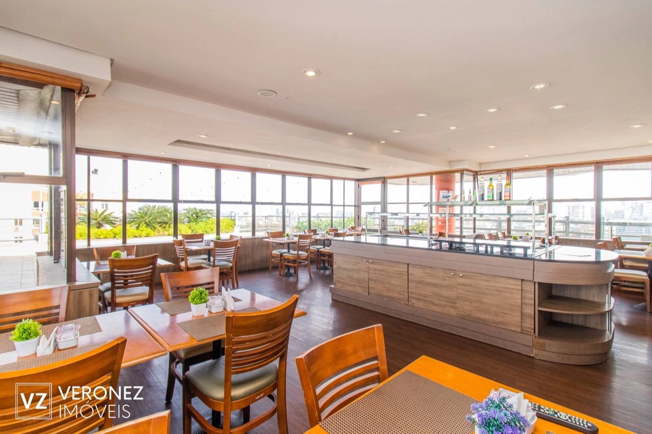 Edifício com infra estrutura de piscina térmica no terraço com vista panorâmica, sauna, academia, restaurante panorâmico e portaria 24h.
