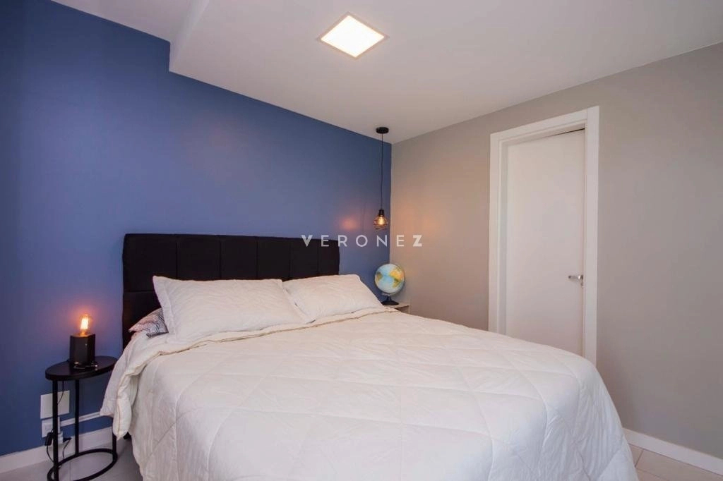 Apartamento semimobiliado com 48 m², 1 suíte e lavabo. Em andar alto, conta com uma belíssima vista e ótima posição solar. A cozinha é integrada e dispõe de churrasqueira.