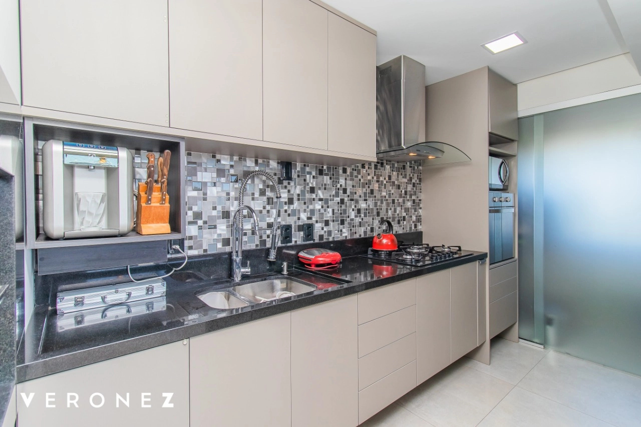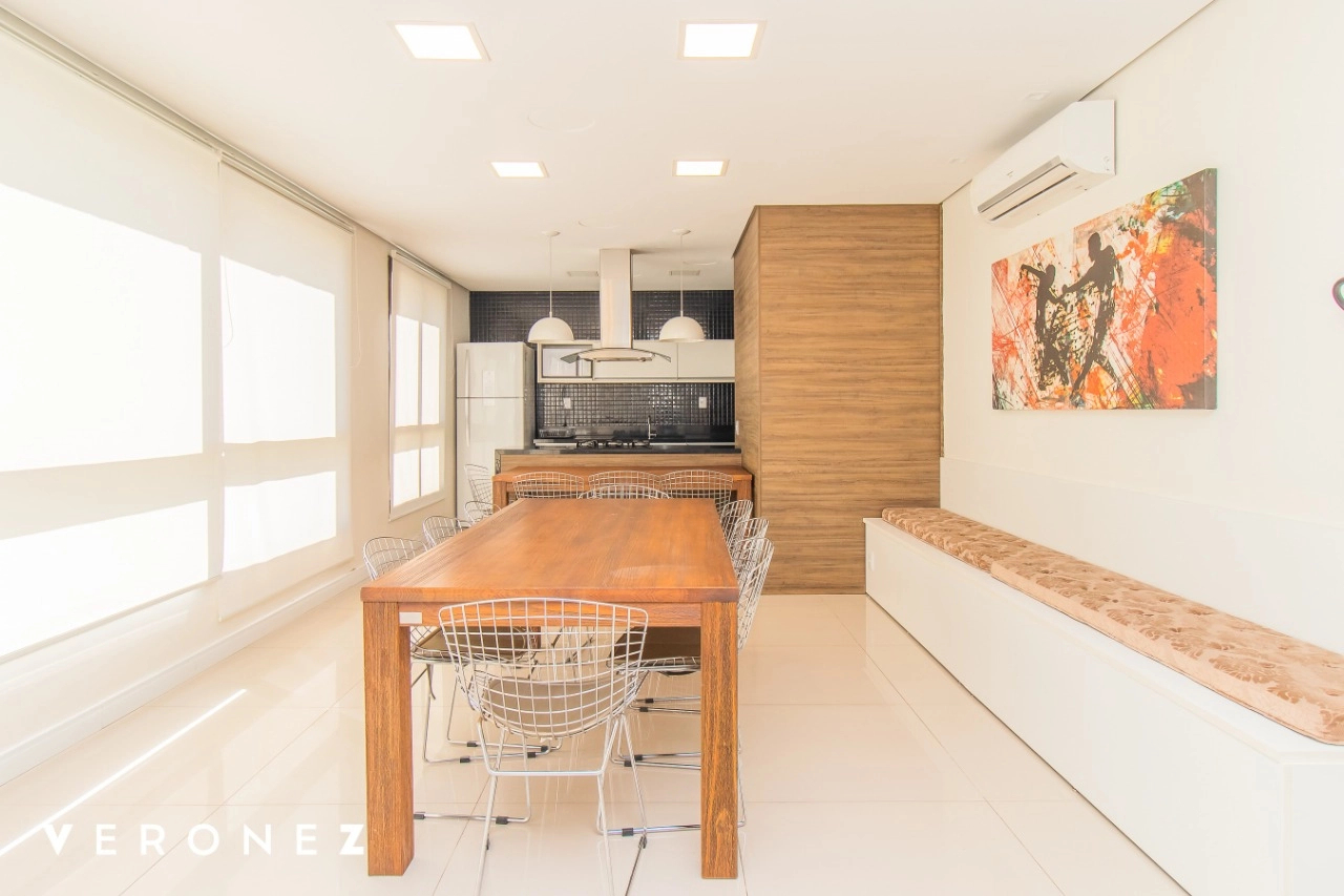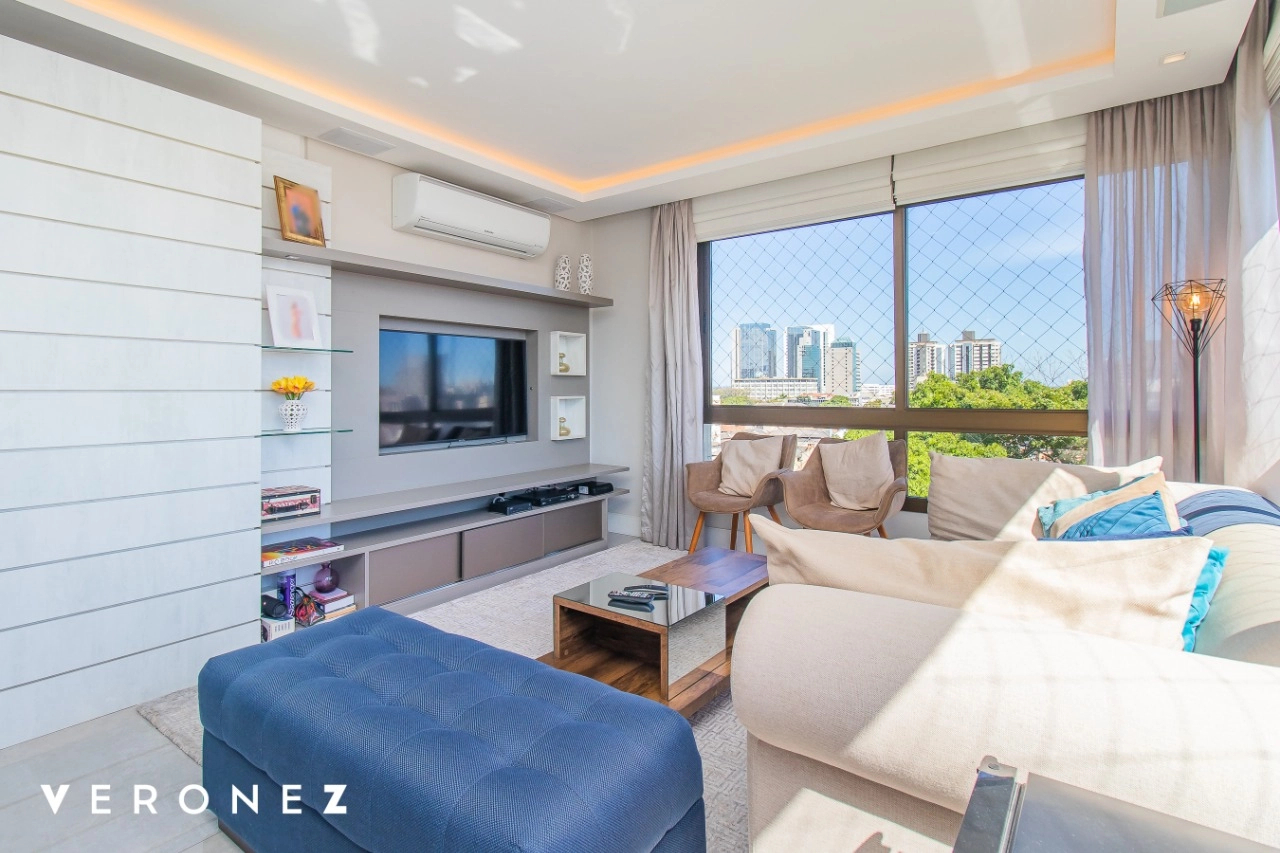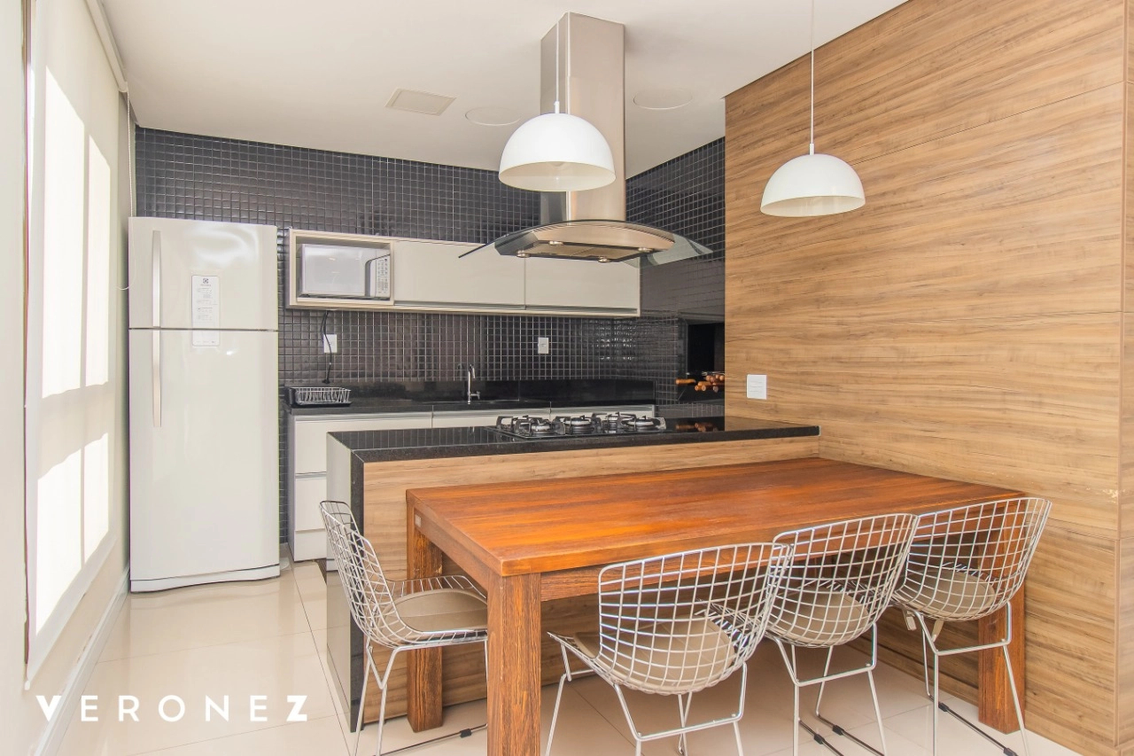 Apartamento decorado e mobiliado com 90m², 3 dormitórios (transformado em 2) , uma suíte, living amplo ensolarado e com esquadrias vidro em toda sala. Cozinha americana com churrasqueira e área de serviço separada. Apartamento com ótima posição solar e linda decoração. Duas vagas de garagem separadas e escrituradas.