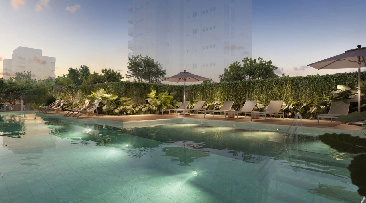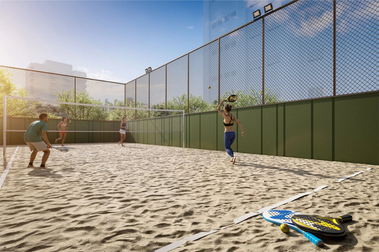Salão de festas, Fitness, Piscina coberta com raia, brinquedoteca, playground, Piscina externa, quadra de beach tênis, miniquadra esportiva e pet place.